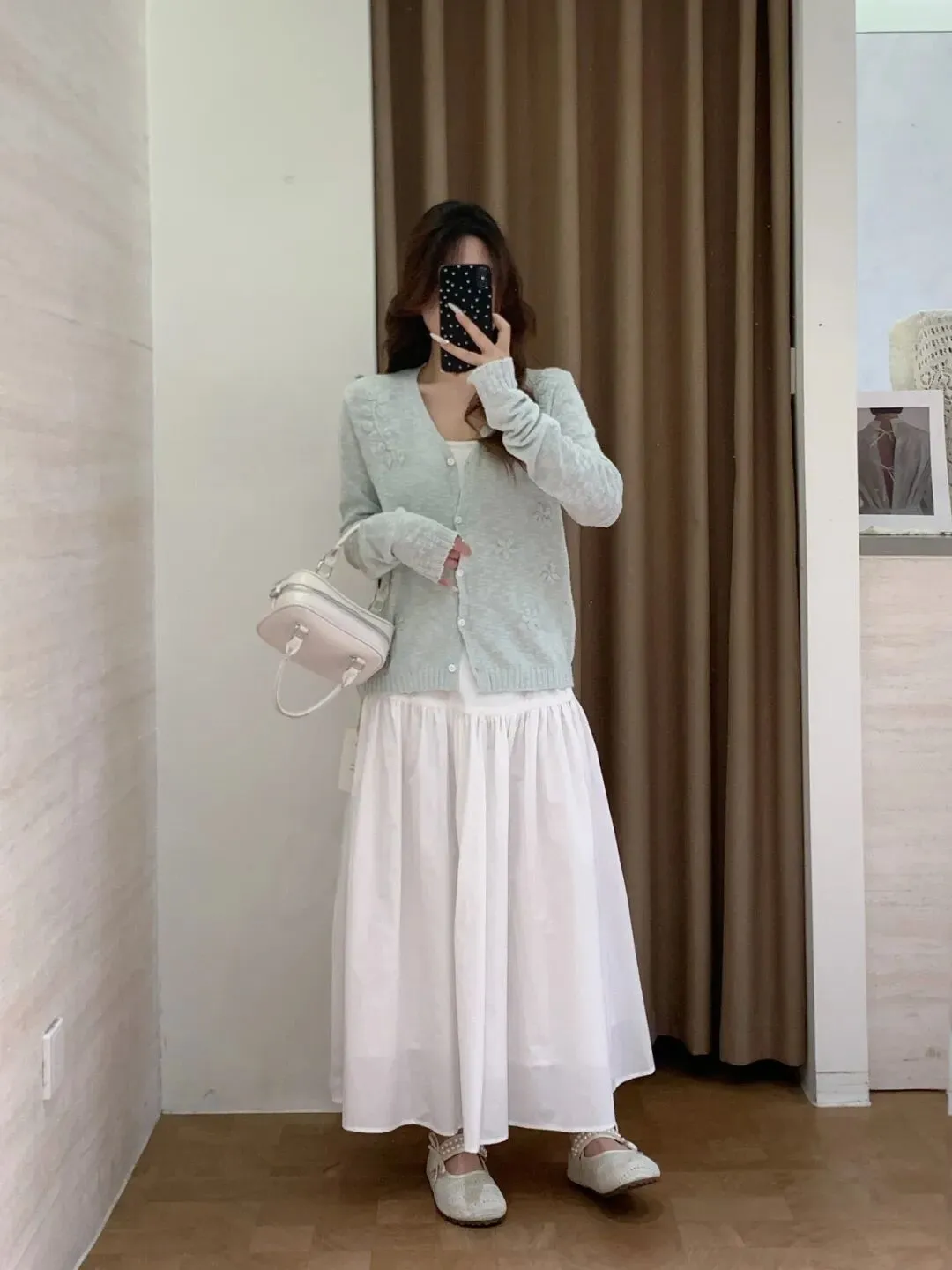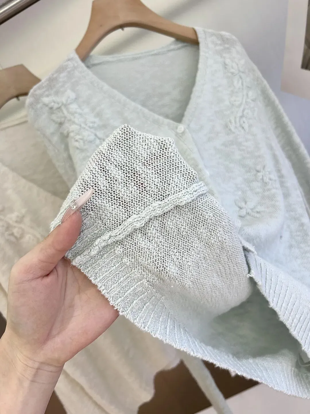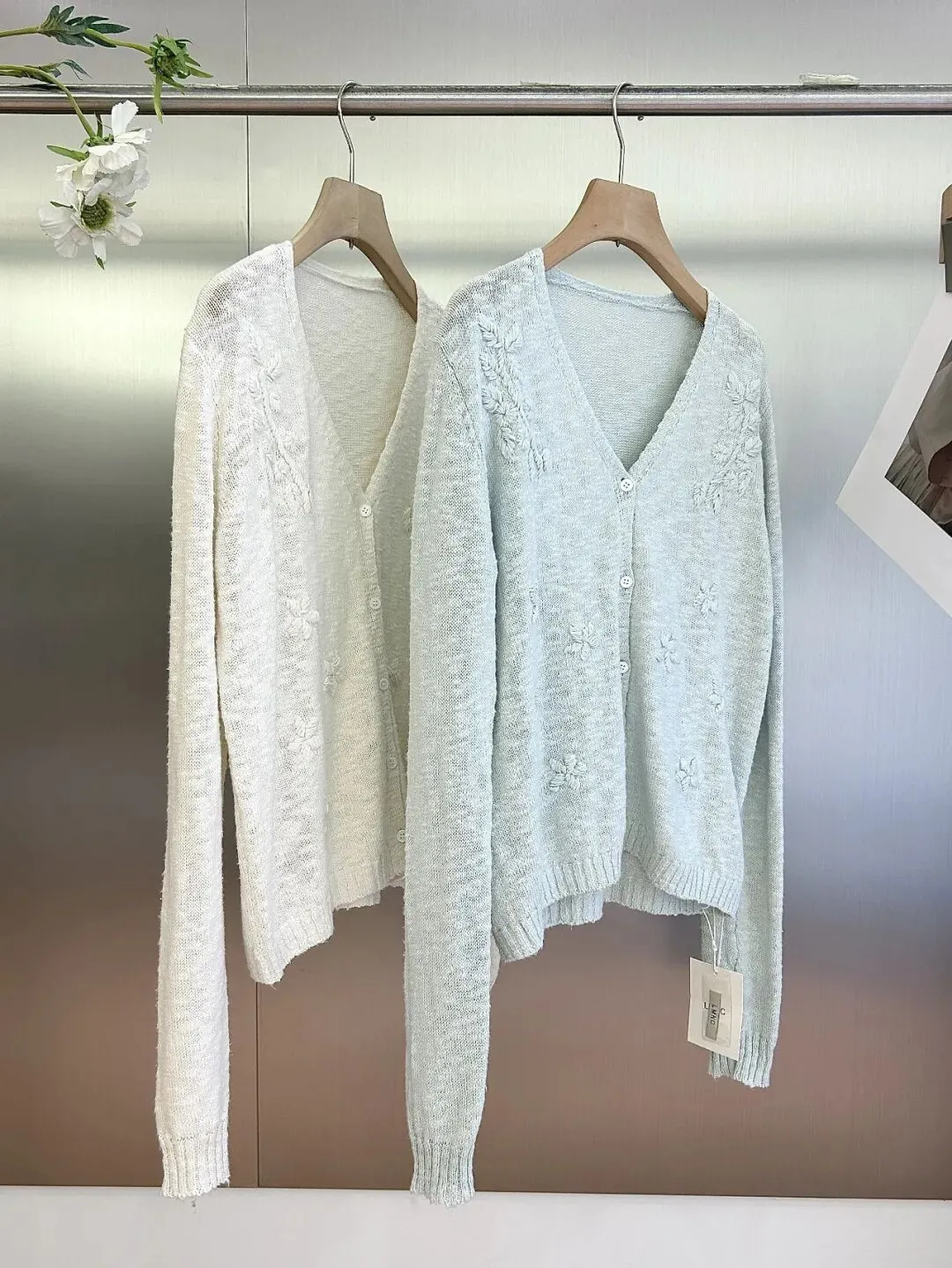 【淘宝】 https://e.tb.cn/h.7JcvB1oiTaD4qh7?tk=HnQoUSuDMQN HU071 「IN BLUE 韩系温柔风立体花朵刺绣设计感软糯针织V领毛衣开衫女」
