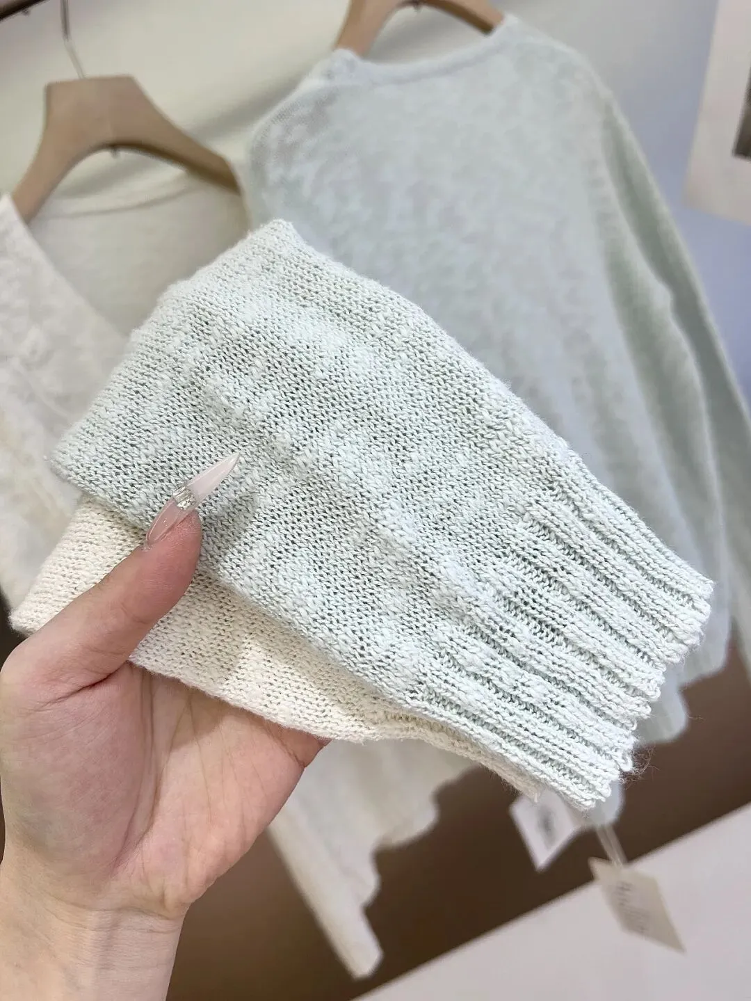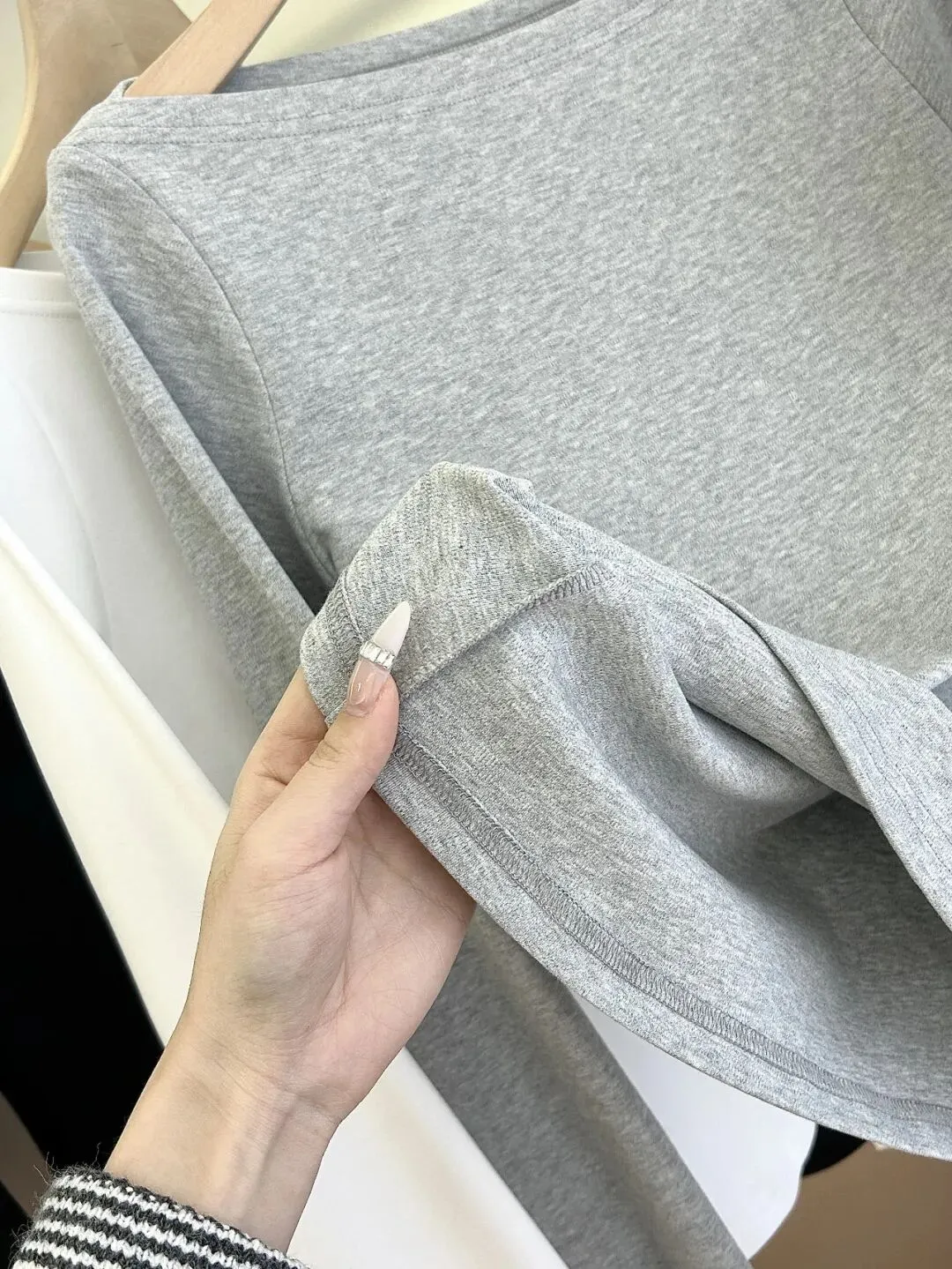 这款整个领口袖口都是细螺纹编织,抗撕裂耐穿