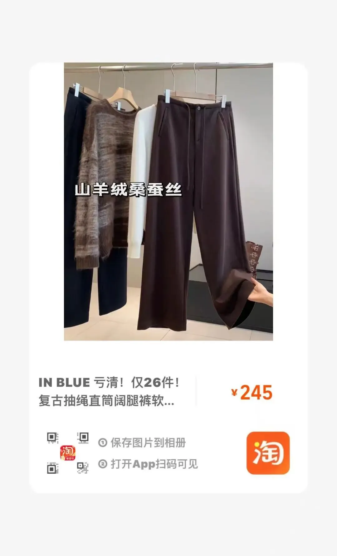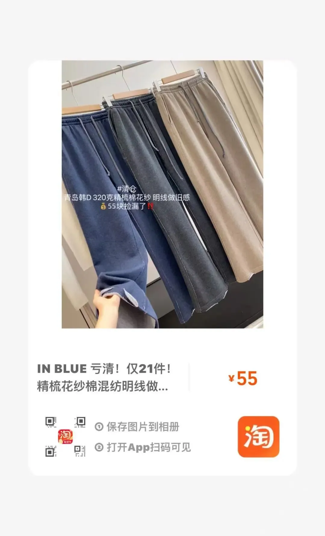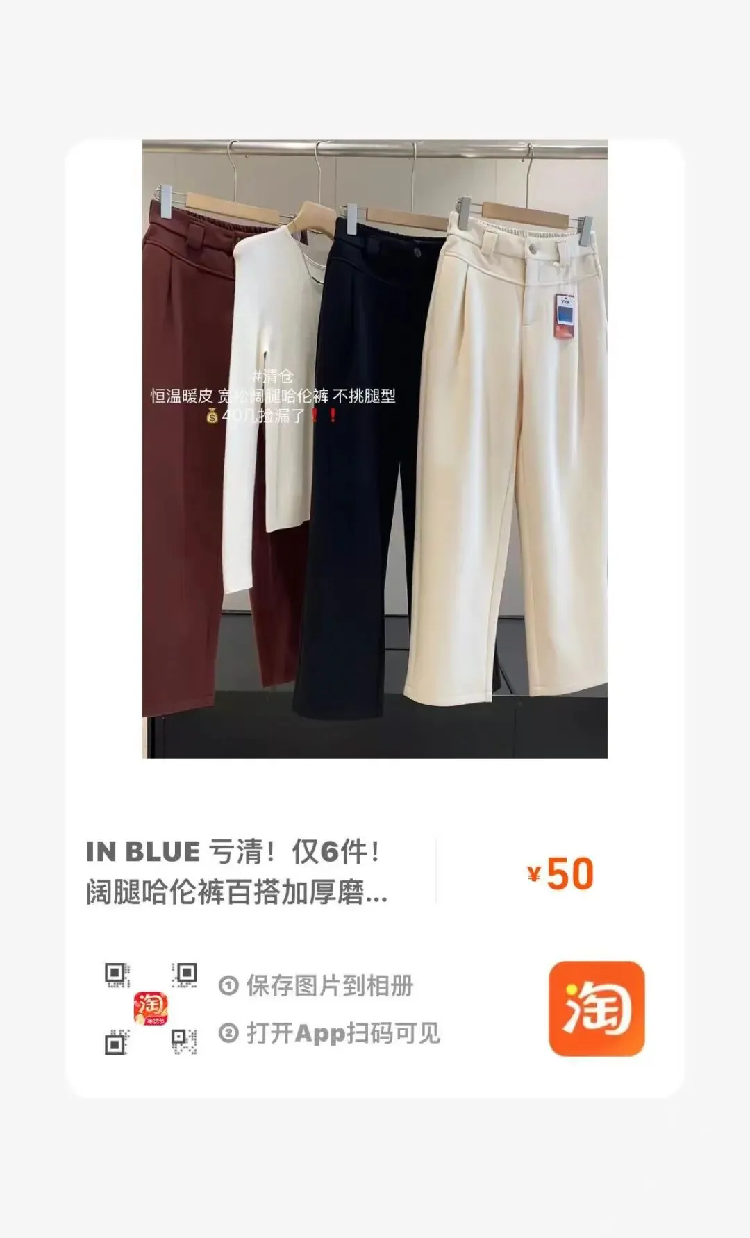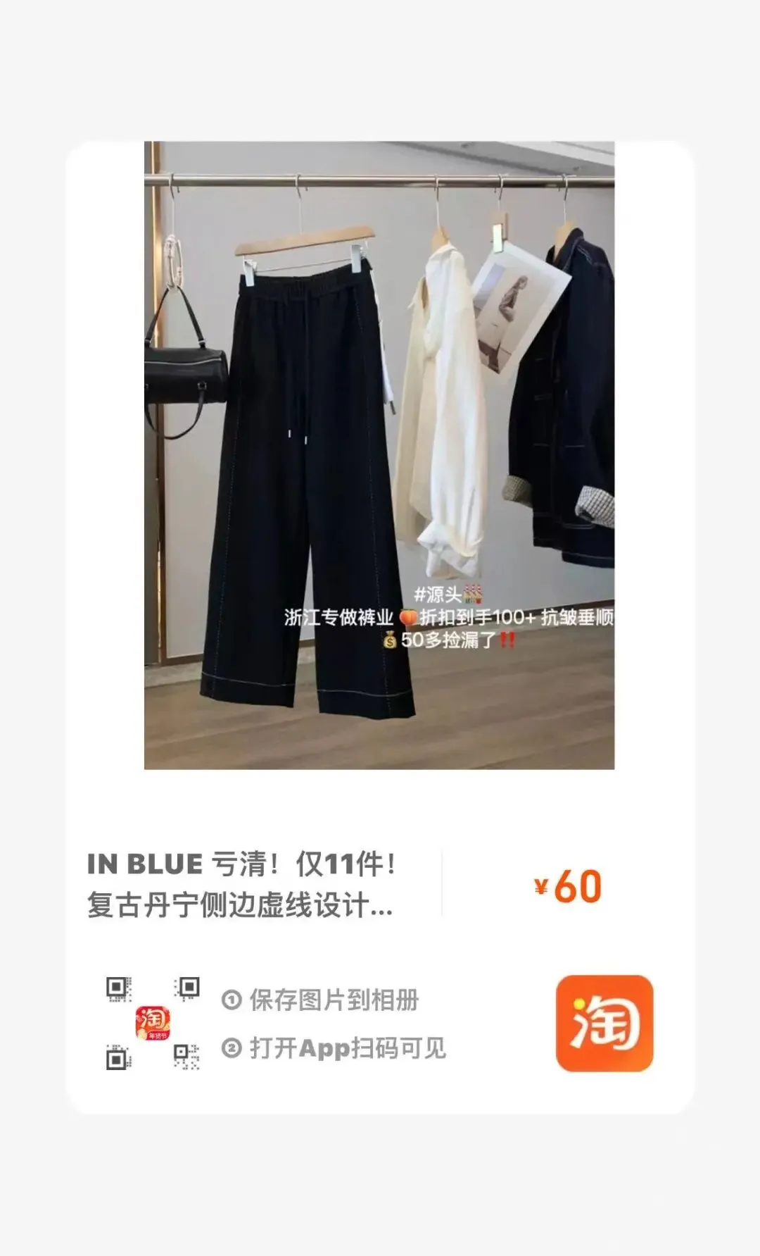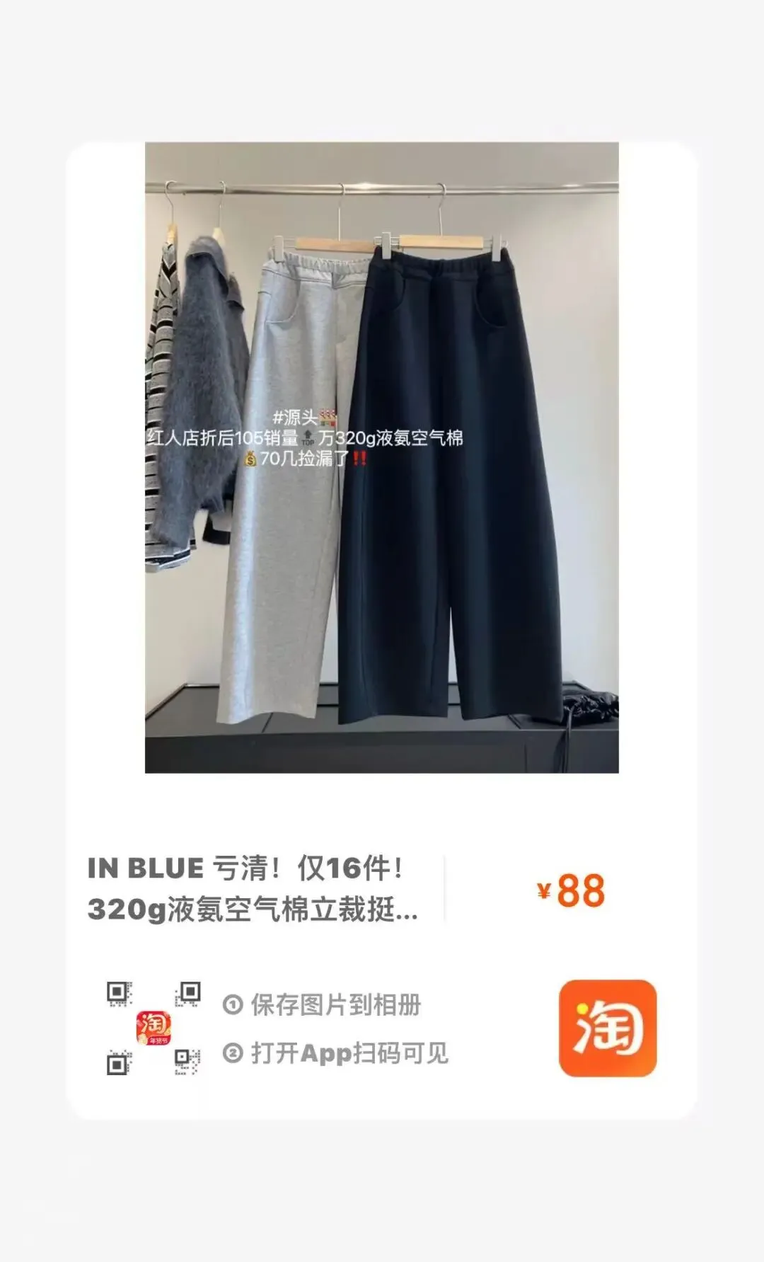 【淘宝】https://e.tb.cn/h.7qMn3jUsWIWTB91?tk=GazkUSTtLnA CZ193 「IN BLUE 高品质清货!仅86件!松弛慵懒风大阔腿显瘦挺括休闲卫裤」