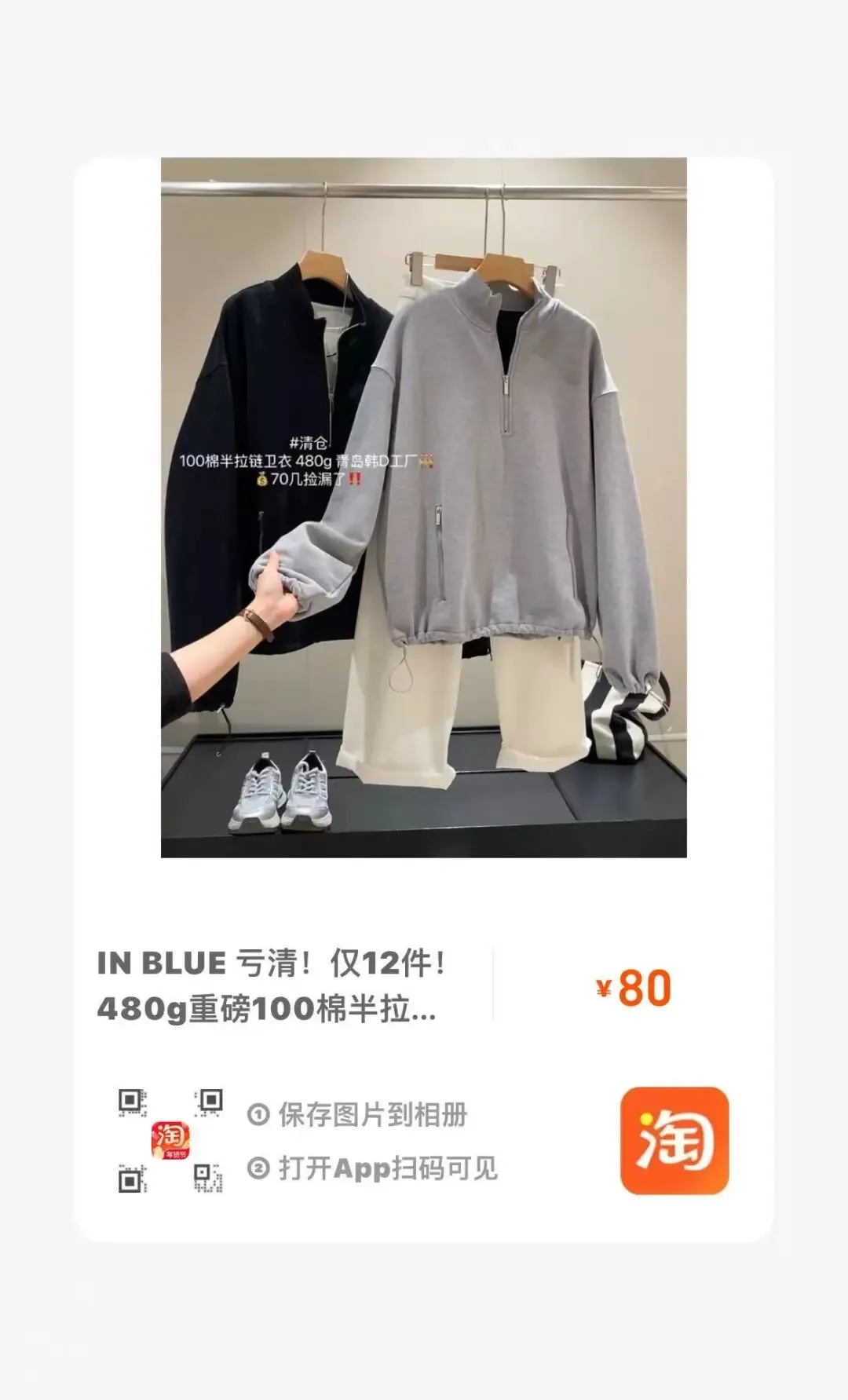 【淘宝】https://e.tb.cn/h.7qV52VYR2KtIGKE?tk=hER3USTvLsv MF287 「IN BLUE 高品质清货!仅14件!加厚连帽短卫衣外套休闲卫裤套装」