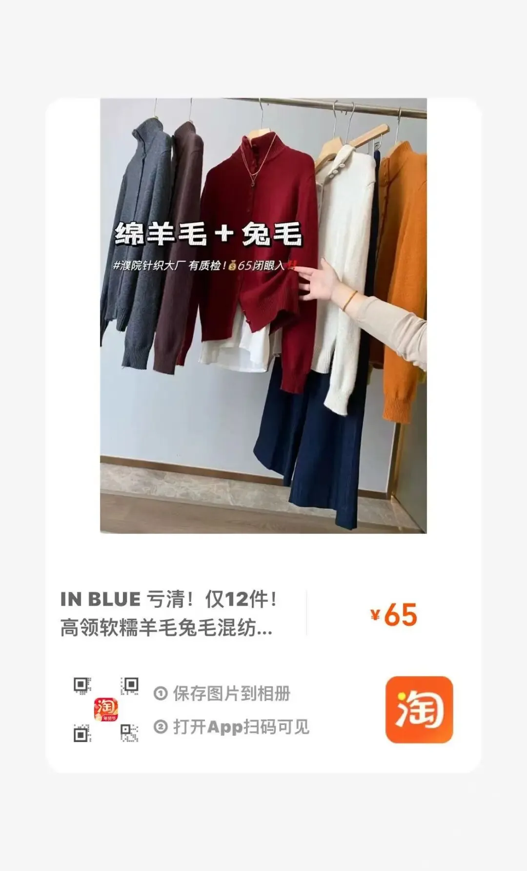 【淘宝】https://e.tb.cn/h.7qMMlF08uVEy5bP?tk=wwSVUSTFTyH HU293 「IN BLUE 高端线清货!山羊绒绵羊毛混纺韩系高领针织毛衣开衫女」