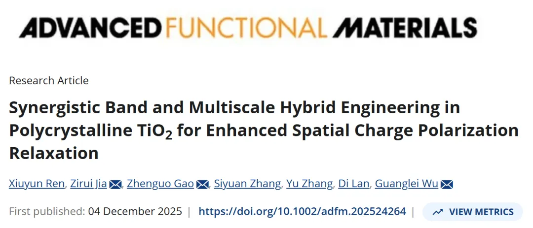 近日,青岛大学材料科学与工程学院吴广磊教授团队提出了一种“协同能带调控—多尺度杂化工程”策略,构建具有Co[Fm-3m]/TiO2[I41/amd]/TiO2[P42/mnm]多相共存结构的杂化半导体纳米晶(Hybrid Semiconductor Nanocrystals,HSNCs)。该结构可在原子、晶胞、晶界、微观网络多个尺度上精准调控空间电荷动态行为,实现显著增强的极化损耗与电磁衰减能力。相关成果以“Synergistic Band and Multiscale Hybrid Engineering in Polycrystalline TiO2 for Enhanced Spatial Charge Polarization Relaxation”为题发表在Advanced Functional Materials期刊上。