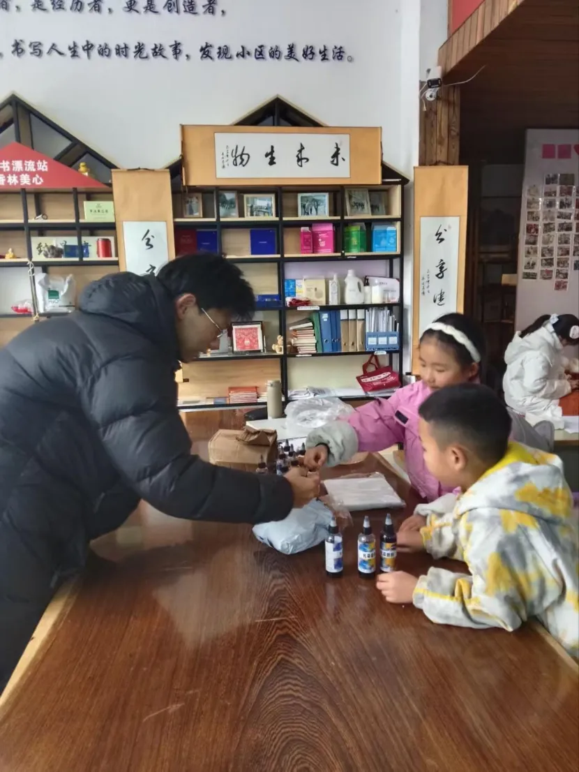 洪靖舜老师带着香林美域的孩子们进行了扎染创作,该课程备受孩子们的喜欢。白手帕经折叠、捆扎后浸入染料,蓝紫交织的独特纹样缓缓显现,孩子们沉浸式感受非遗工艺的神奇。并且在洪渡河畔传授了情绪盲盒交换与解压手作课,孩子们通过盲盒交换情绪、送上祝福,再动手制作解压小挂件,学会接纳与释放压力