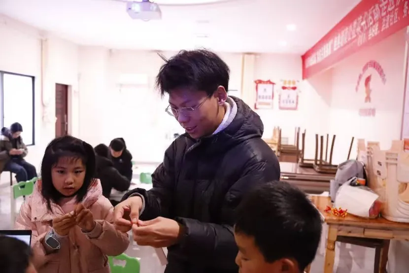 周余帅老师带领大家用扭扭棒制作 “鞭炮”,彩色扭扭棒在指尖缠绕弯折,一个个喜气洋洋的作品应运而生,有效锻炼了孩子们的精细动作与想象力。