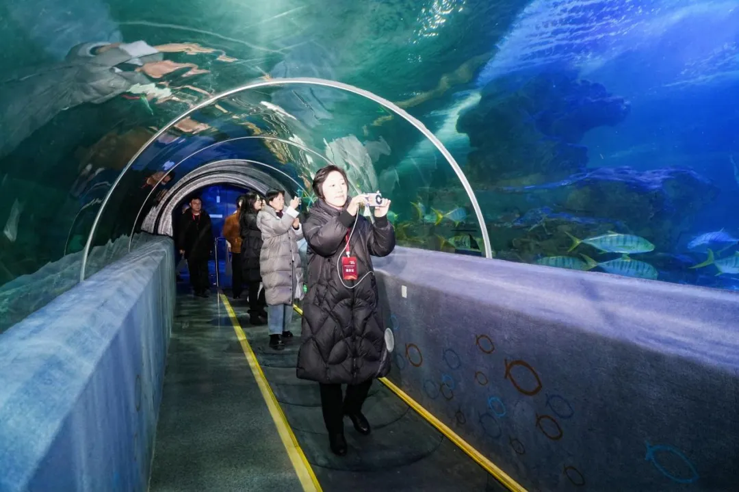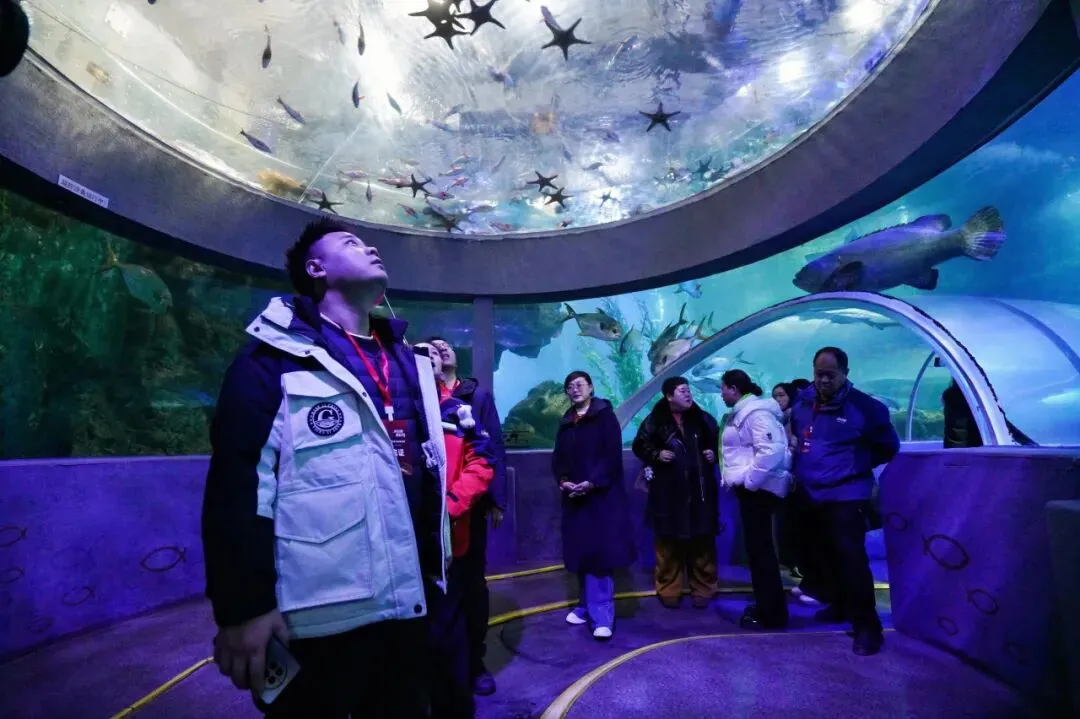 1月28日下午,采风团先后走进青岛啤酒博物馆、青岛海底世界、中国科学院海洋研究所,发现研学旅游体验的更多可能。当晚,采风团在青岛奥帆中心海上剧场,沉浸式观赏大型沉浸式航海史诗旅游演艺《寻梦沧海》。
