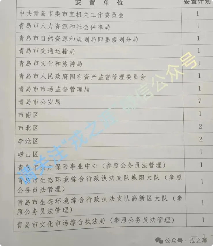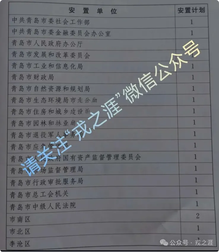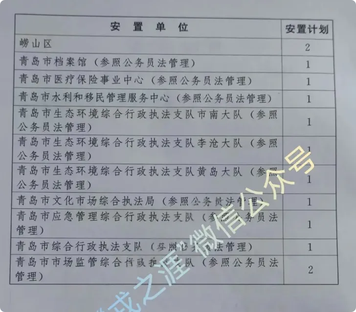【山东省青岛市】2025年度团职以下军队转业军官安置岗位公示