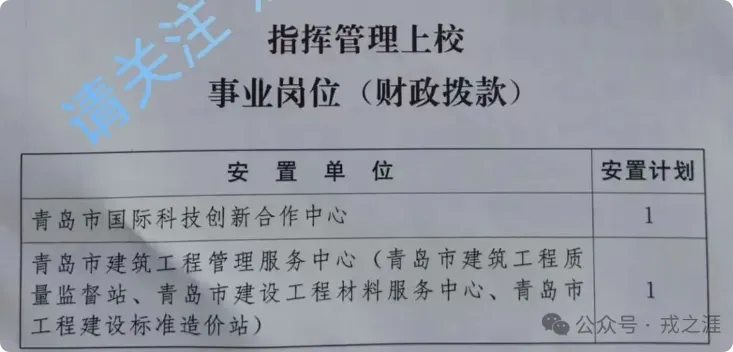 >【山东省青岛市】2025年度团职以下军队转业军官安置岗位公示