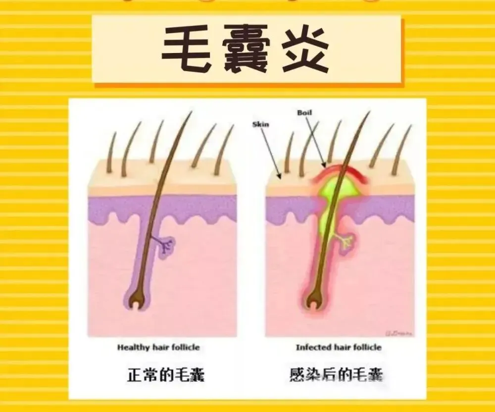 但如果皮肤和毛囊受到损伤、刺激或毛囊,细菌就容易进入皮肤内部,感染一个或多个毛囊,进而引发毛囊炎。