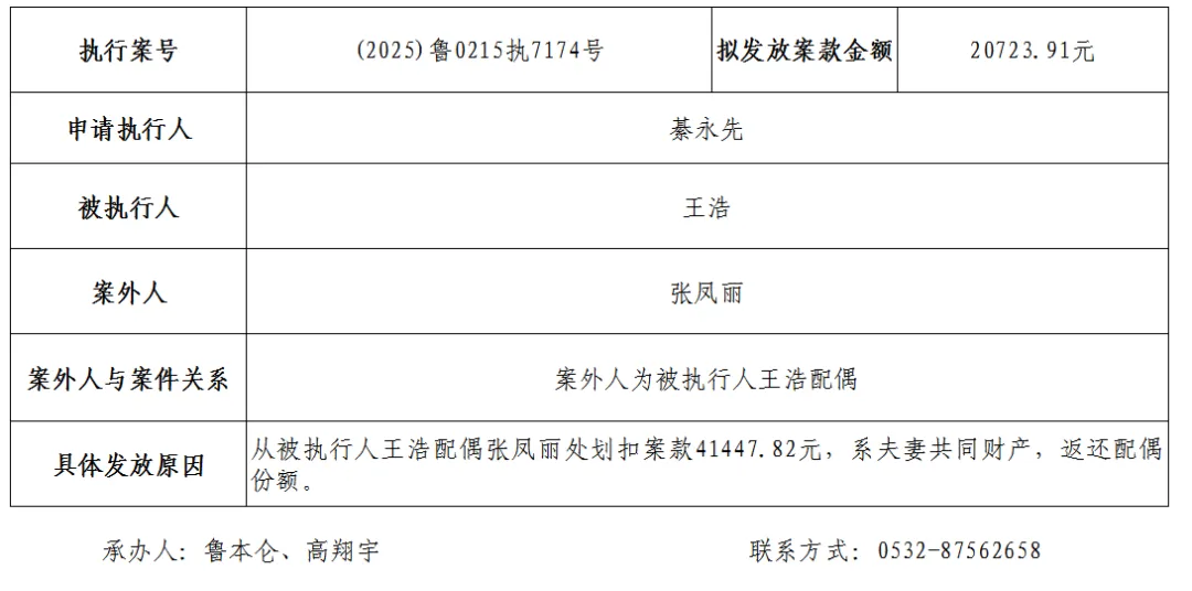 青岛市即墨区人民法院关于向案外人发放执行案款的公示(2026年第4期)
