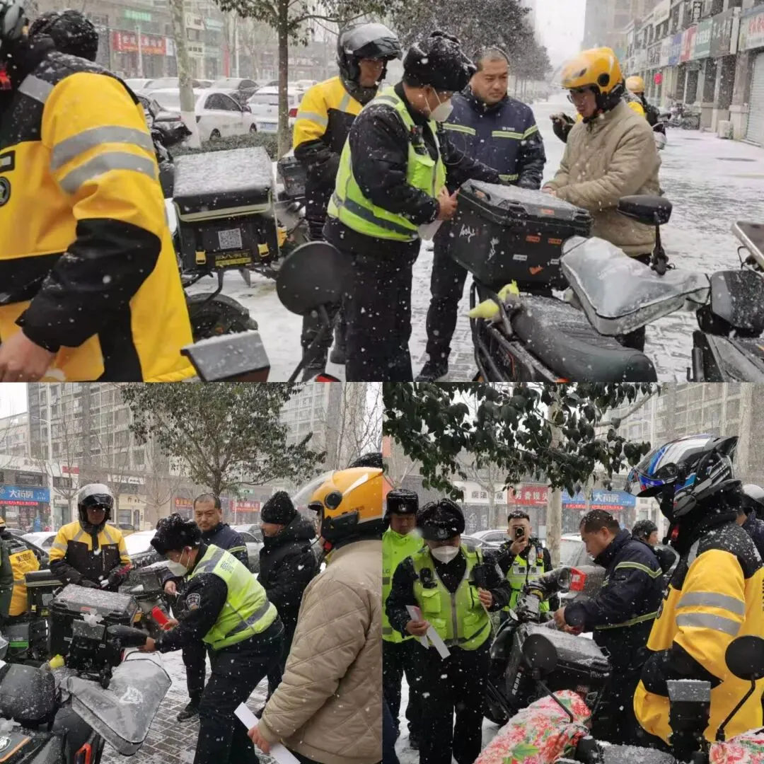 活动期间,太平财险烟台中支的工作人员与福山交警大队的民警一同,在配送站点及主要路口附近设立服务点,为往来穿梭的外卖配送电动自行车免费发放高质量反光条,有效增强车辆在夜间及低能见度天气下的辨识度,降低因视线不清导致的潜在碰撞风险。交警同时现场开展安全提醒,讲解雪天骑行注意事项。骑手纷纷表示,此举切实解决了他们雨雪天工作的现实担忧。