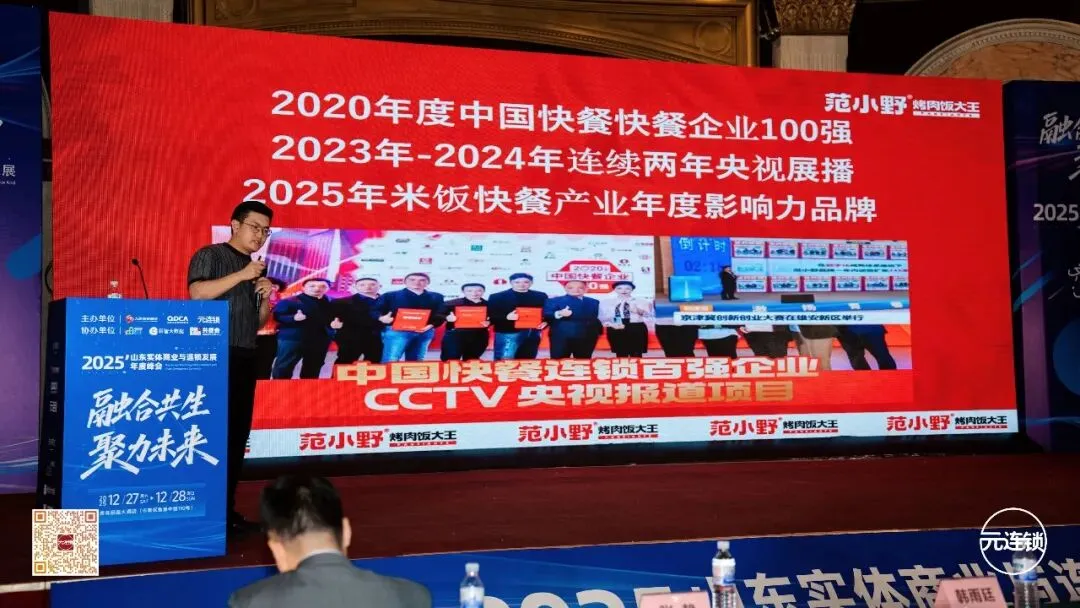 快餐赛道竞争白热化,如何在近300万家门店倒闭的行业洗牌中逆势突围?这是青岛本土餐饮创业者普遍关心的核心命题。在青岛市连锁经营协会2025年会上,我们特别邀请到范小野烤肉饭大王联合创始人、95后创业标杆-崔小刚,带来《融合破局:范小野烤肉饭抗周期经营密码》主题分享。凭借8年聚焦烤肉饭品类的深耕沉淀,以及全国200+门店(在营171家)的实战经验,崔小刚用“质价比打底、全渠道发力、爆品破局”的核心逻辑,为青岛快餐品牌送上了一套可直接复用的增长方案。作为铁板烤肉饭品类开创者,崔小刚带领范小野斩获多项行业荣誉:2020年度中国快餐企业100强、2023-2024年连续两年央视展播、2025年米饭快餐产业年度影响力品牌。在行业寒冬中,品牌依然保持稳健拓店节奏,其“小而美、高坪效、可复制”的模式,对扎根刚需赛道、适配下沉市场的青岛快餐品牌而言,极具借鉴价值。一、行业透视:青岛快餐的抗周期增长关键