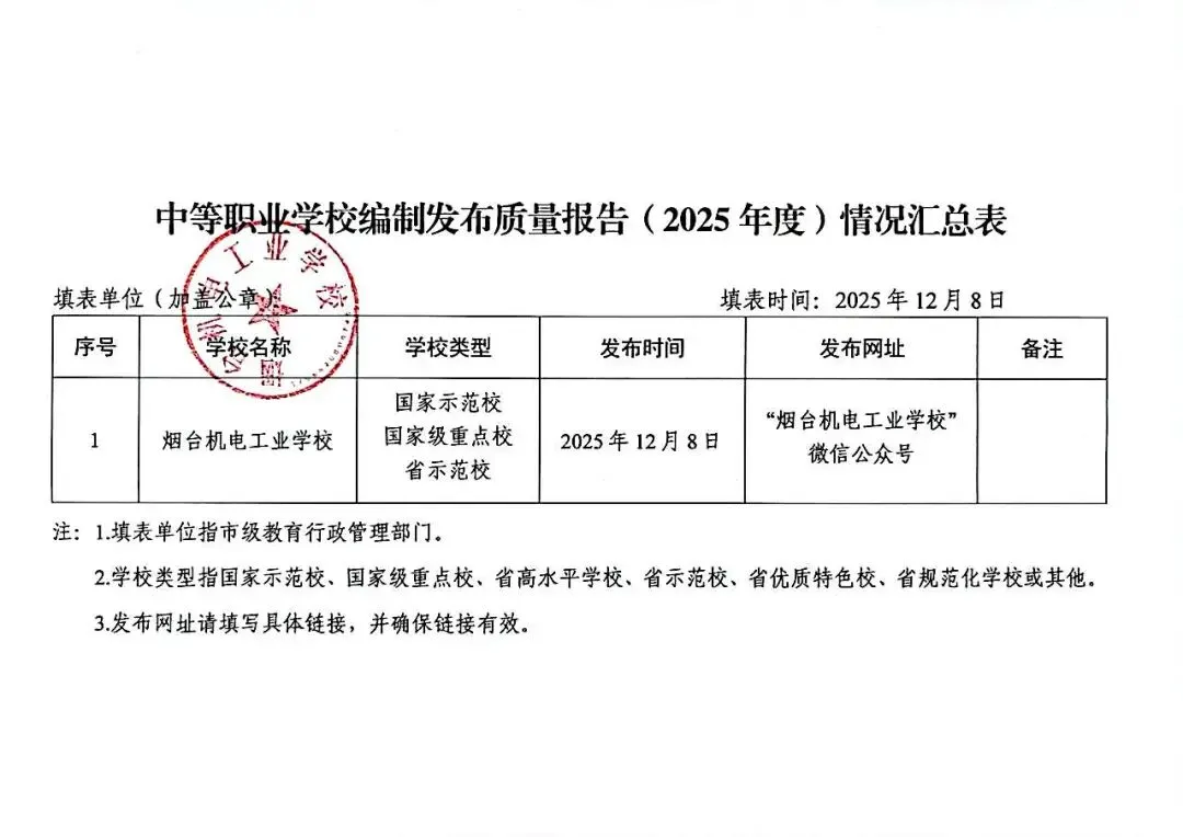 >烟台机电工业学校2025年度中等职业教育质量报告