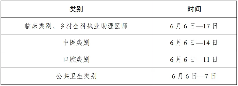实践技能考试由省医师资格考试领导小组组织实施,原则上在国家实践技能考试基地进行。实践技能考试合格分数线为60分。在国家实践技能考试基地参加考试且成绩合格者,成绩两年有效。全国考试时间(烟台考点考生在此时间范围内,具体时间请以准考证时间为准)如下: