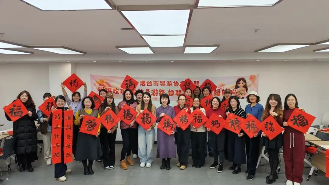 新春将至,墨香盈袖。为传承中华优秀传统文化,丰富女导游精神文化生活,1月27日下午,烟台市导游协会妇联在烟台芝罘社会组织创益园举办“喜‘福’临门·墨香迎新”传统文化雅集活动,市导游协会女会员齐聚一堂,以笔墨寄情,共迎新春,在红笺墨香中感受传统民俗的独特魅力。