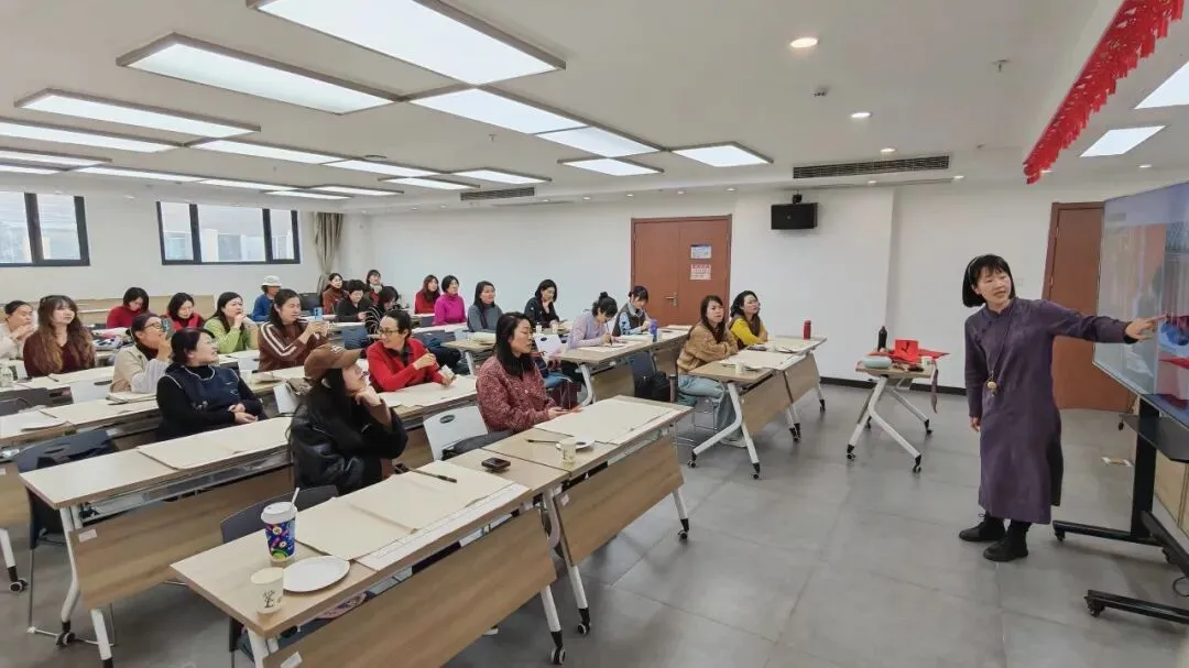 活动伊始,烟台市导游协会妇联主席王姗姗以专业而生动的讲述,引领姐妹们走进“福”字与春联的千年文化长廊。她从甲骨文中的祭祀形态,到秦汉篆隶的演变,再到楷书定型的吉祥寓意,系统梳理了“福”字上百种写法背后所承载的时代故事与民间智慧。一幅幅历代“福”字图例、一段段经典春联典故,在她深入浅出的解读中鲜活起来。现场姐妹们凝神聆听,不时拍照记录,眼神中透出作为文化传播者的求知渴望。这不仅是知识的传递,更是一场文化自信的滋养——未来在带领八方宾客时,她们笔下的山川海韵间,将多一份关于“福”文化的从容讲述。