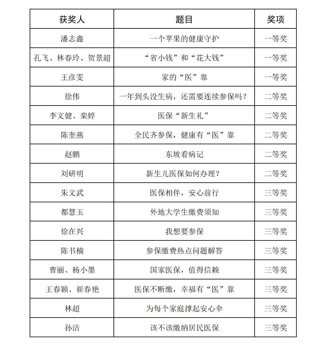 >烟台市居民医保全民参保短视频征集活动获奖名单