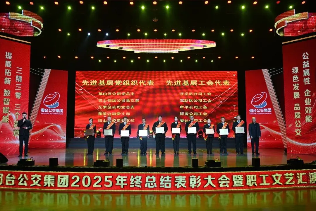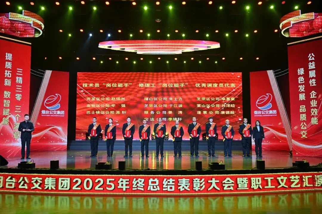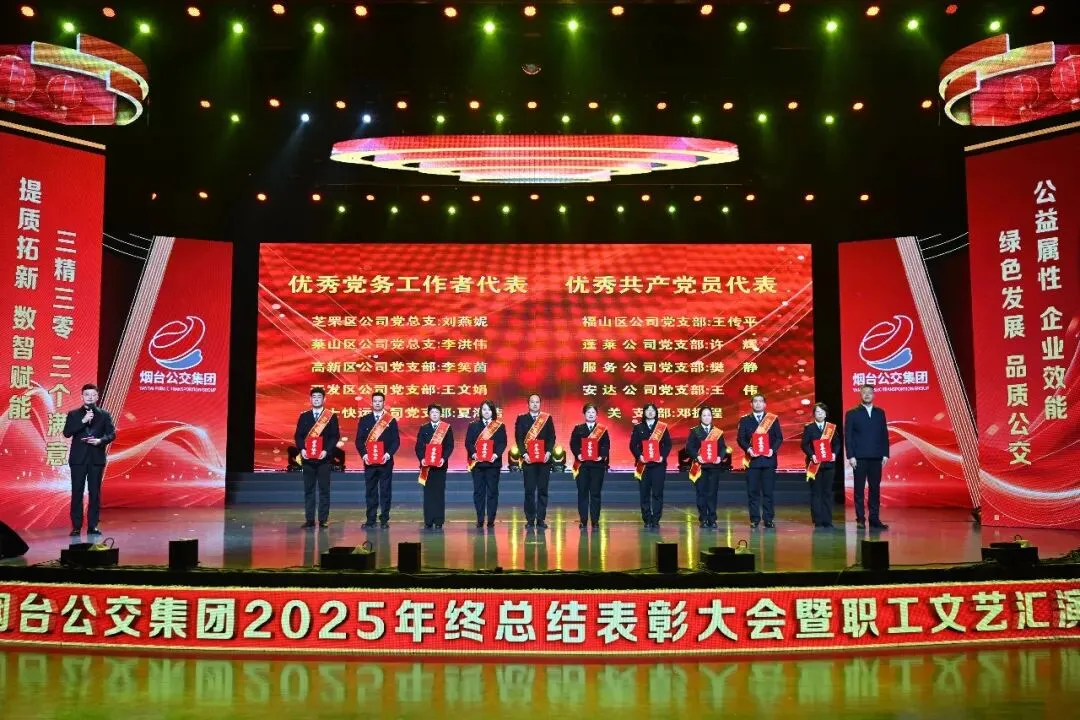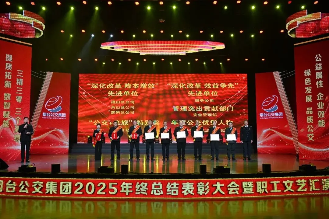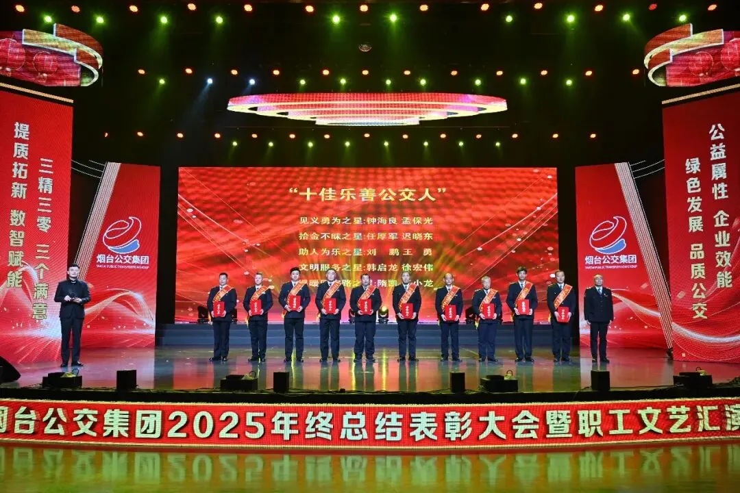 踔厉奋发承佳绩,凝心聚力启新程。1月28日,烟台公交集团2025年终总结表彰大会暨职工文艺汇演在烟台广播电视台圆满落幕。市国资委党委副书记、副主任、二级调研员周红梅,市总工会党组成员、副主席鲍明凌,市交通运输局党组成员、副局长孙承军,市委宣传部文明创建科科长徐斯睿受邀参会并为先进职工颁奖,集团领导班子成员、外部董事、优秀职工代表和家属代表以及部分基层一线干部职工在此齐聚一堂,总结过往硕果,展望未来蓝图,表彰先进典型,凝聚奋进力量,共同奔赴崭新的2026年。