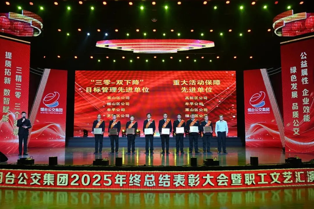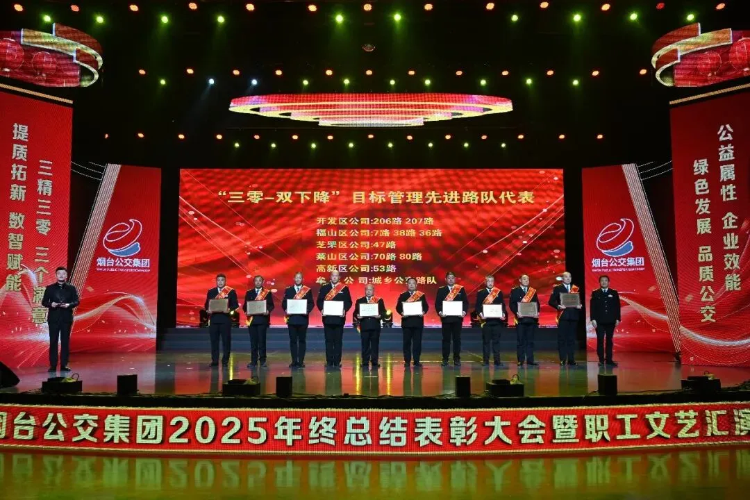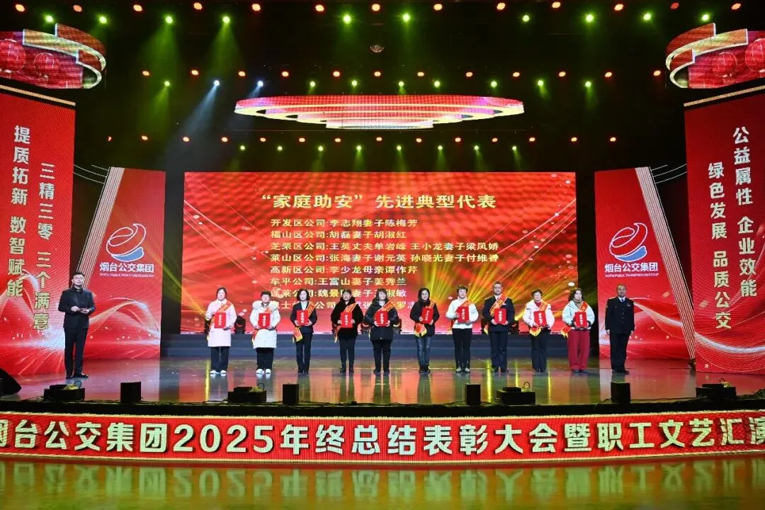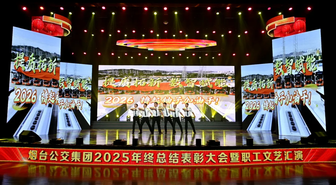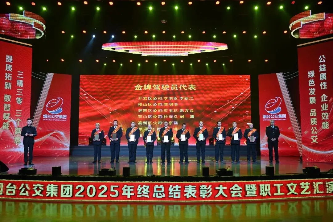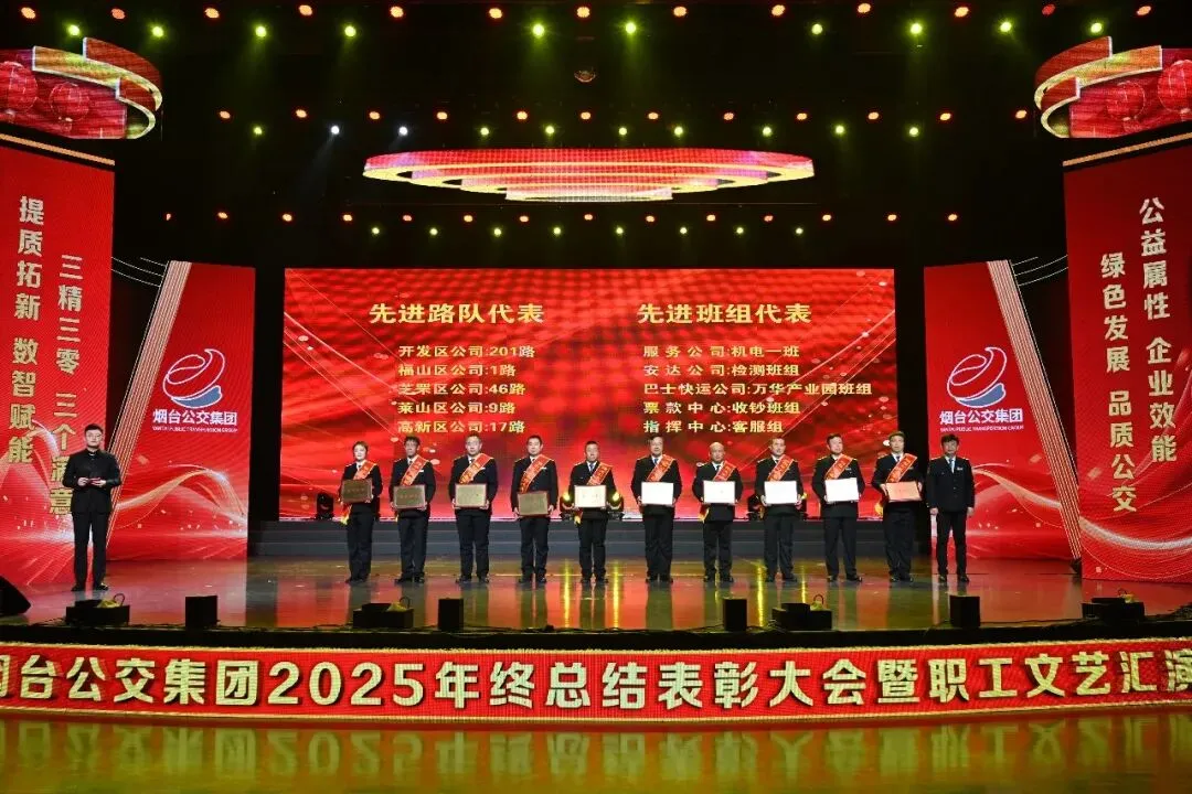 踔厉奋发承佳绩,凝心聚力启新程。1月28日,烟台公交集团2025年终总结表彰大会暨职工文艺汇演在烟台广播电视台圆满落幕。市国资委党委副书记、副主任、二级调研员周红梅,市总工会党组成员、副主席鲍明凌,市交通运输局党组成员、副局长孙承军,市委宣传部文明创建科科长徐斯睿受邀参会并为先进职工颁奖,集团领导班子成员、外部董事、优秀职工代表和家属代表以及部分基层一线干部职工在此齐聚一堂,总结过往硕果,展望未来蓝图,表彰先进典型,凝聚奋进力量,共同奔赴崭新的2026年。