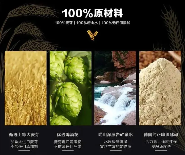 崂飘尔啤酒的水质来自崂山花岗岩裂隙孔隙水,富含多种矿物质及微量元素;采用质量上等的加拿大进口麦芽,捷克进口啤酒花,德国进口酵母,精心酿造而成。色泽饱满凝润,口感醇厚香甜;饮时酣畅,饮后无宿醉感。