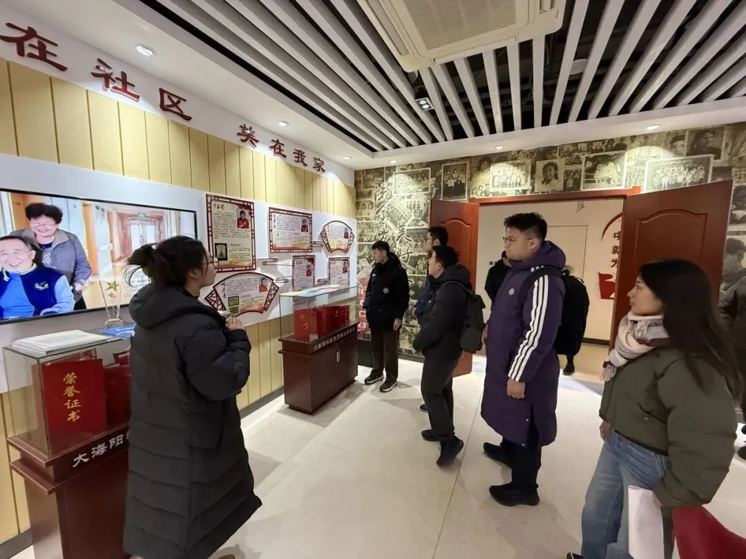 随后支队队员分为两队进行了慰问社区老人活动。队员们围坐在老人身边,耐心地倾听老人们讲述大海阳社区多年来的变迁故事。老人们感慨道,得益于社区推行的“老饭堂”和“一家面食”等项目,他们的晚年生活不仅有了物质保障,更感受到了家门口的温暖。通过此次慰问活动,支队队员们不仅为老人们带去了物质上的关怀,更在实际行动中深刻领悟了大海阳社区“共建共治共享”的治理理念,切身体会到了基层党组织在打造幸福社区中的核心引领作用。