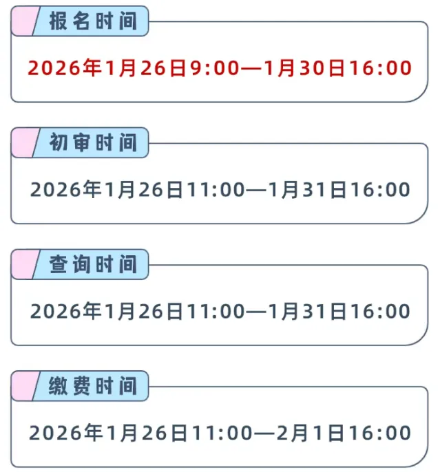 缴费时间:2026年1月26日11:00—2月1日16:00