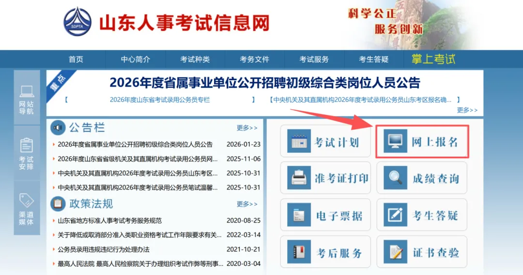 进入山东人事考试信息网,选择“网上报名”进入报名。