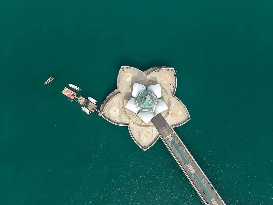 有时候,你也可能有这样的体会,我们对自以为熟悉的地方讲起来的时候又突然感到格外陌生,竟不知从何说起。也许在一座城市待久了,就会越觉得周遭景致稀松平常,自认早已摸清全貌,没什么可逛可探寻的,可当真沉下心去了解,又会发现藏在日常里的陌生与惊艳。原来那些美好从不在远方,一直就在我们身边。就拿东山栈桥来说,去过的次数已经记不太清楚了,甚至已经觉得很稀松平常失去兴趣了。很多时候我们都习惯了平视的视角,如果换个角度从航拍俯拍望去,东山栈桥的全貌竟藏着大大的惊喜!整座桥卧在碧波之上,主体造型却是一把灵动的吉他,自带浪漫音乐基因,原来这座靠海的城,藏着这么多山海与旋律的羁绊。初次关注东山栈桥,还是因为所在位置可以说是烟台观日出的最佳位置之一。每一次晨光破晓,都能让人充满期待与欢喜。黎明破晓,海平面先透出一抹微光,慢慢晕成暖橙,云层被染得层次分明,海浪轻拍桥身,像给日出配了轻柔的背景音。等太阳从海面探出头,金光铺满海面,脚下的栈桥成了光影的舞台,随手一拍都是无滤镜大片,连海风里都裹着温柔。晨起的跑者沐浴在第一缕阳光中,感受运动的速度与快乐。东山栈桥的看海体验,从来都是独一份的,但它藏着的岁月故事,让这座栈桥又增加了厚重感。东山栈始建于上世纪50年代,早年因叶剑英元帅曾在此垂钓,与它结下不解之缘,被烟台人亲切称作“将军桥”,这份特殊的渊源,也让栈桥多了几分厚重底蕴。后来栈桥历经岁月洗礼,于2005年启动改造重修,历时8个月完工,焕新后的栈桥全长624米,既有老桥的情怀印记,又添了新潮设计,桥面藏着透明玻璃段,低头可见海浪翻涌,抬头便是蓝天碧海。站在桥端的竞海广场,视野开阔到极致,远处渔人码头红顶错落,近处渔船摇曳,清晨看日出暖光漫海,午后看碧波万顷,傍晚看霞光染海,朝暮景致各有韵味。从空中俯瞰,整座栈桥形似一把舒展的巨大吉他,蜿蜒伸向大海,而尽头的竞海广场则宛如一朵绽放的莲花,与“黄海明珠”景观交相辉映。如果你再细心观察会发现,烟台的音乐元素从不止这一处海上吉他,开发区天马栈桥是倒置高音谱号造型,700米桥身入海,像音符跃在海面;海港路的聂耳雕塑静静伫立,诉说着城市与音乐的深厚羁绊,原来烟台不只有海浪声声,更有流淌在山海间的旋律。