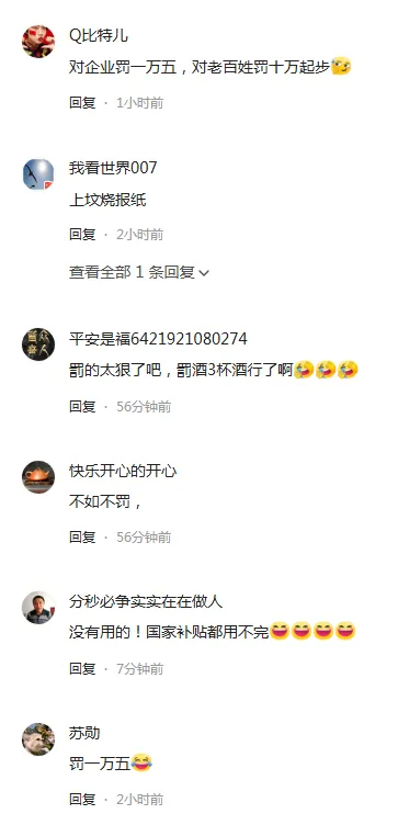 就此,有调皮的网友调侃,“罚这么多,九联会不会破产?”“罰的太狠了吧,罰酒3杯酒行了啊”、“ 对企业罚一万五,对老百姓罚十万起步”,“没有用的!国家补贴都用不完”……