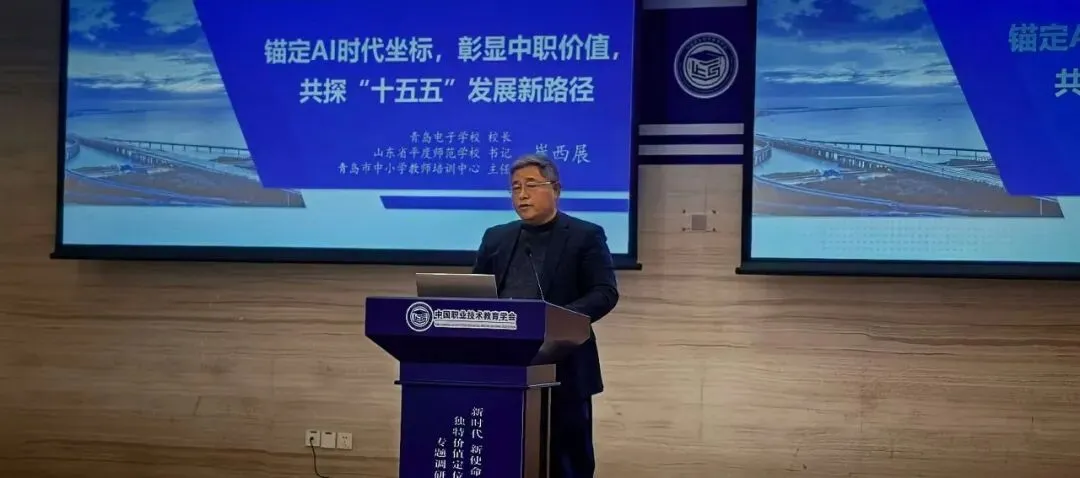 青岛电子学校校长崔西展作为代表受邀参加会议,以《锚定AI时代坐标,彰显中职价值,共探“十五五”发展新路径》为题进行交流,以实事求是的态度审视AI时代中职教育的独特定位和价值。