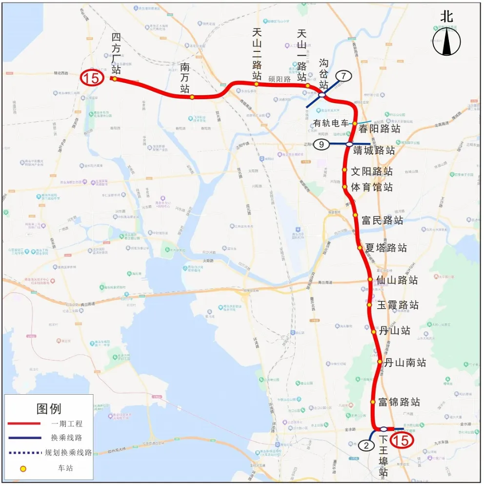 青岛地铁15号线一期工程起于下王埠站,终到四方厂站,途经城阳、李沧、即墨三区,线路正线长约30.8公里,设车站17座,设棘洪滩车辆段1座。建成后,将进一步打通城市南北大动脉,串联东岸与北岸两大城区,助力城阳区更快融入“主城时代”。