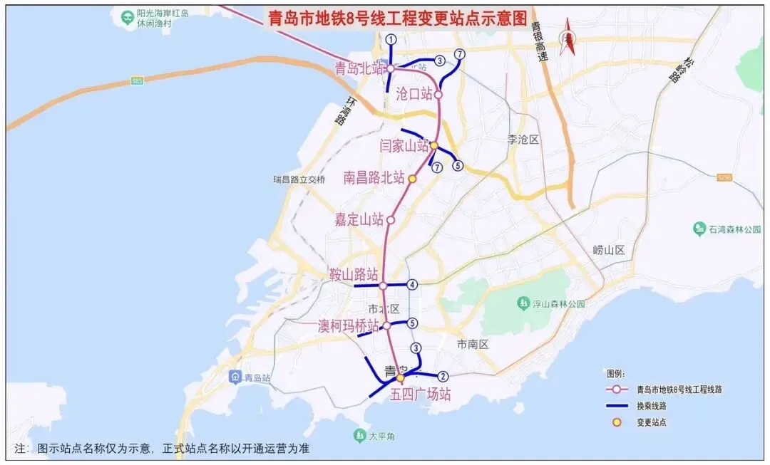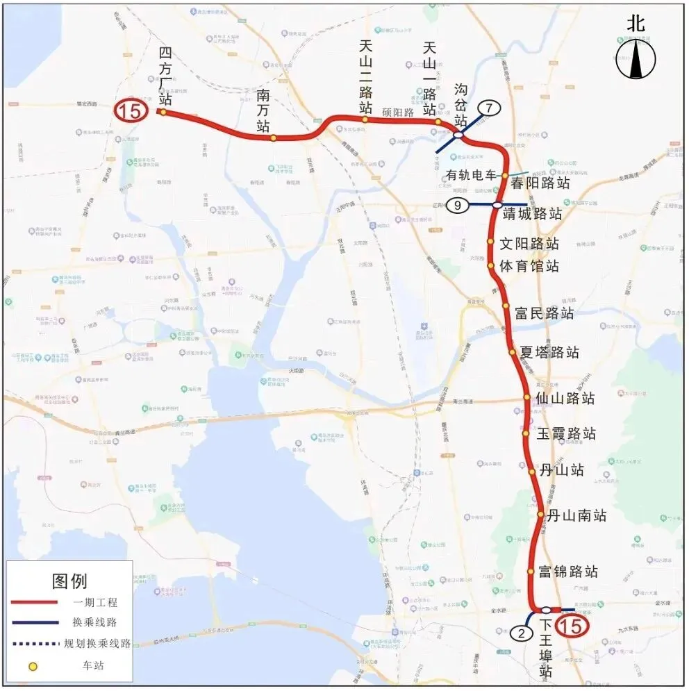 线路概况:起于青岛北站,止于五四广场站,全长13.1公里,共设7座车站。作为连接胶东国际机场与主城区的快速骨干线路,南段开通后将使主城区核心区居民往返机场再增一条快速通道。