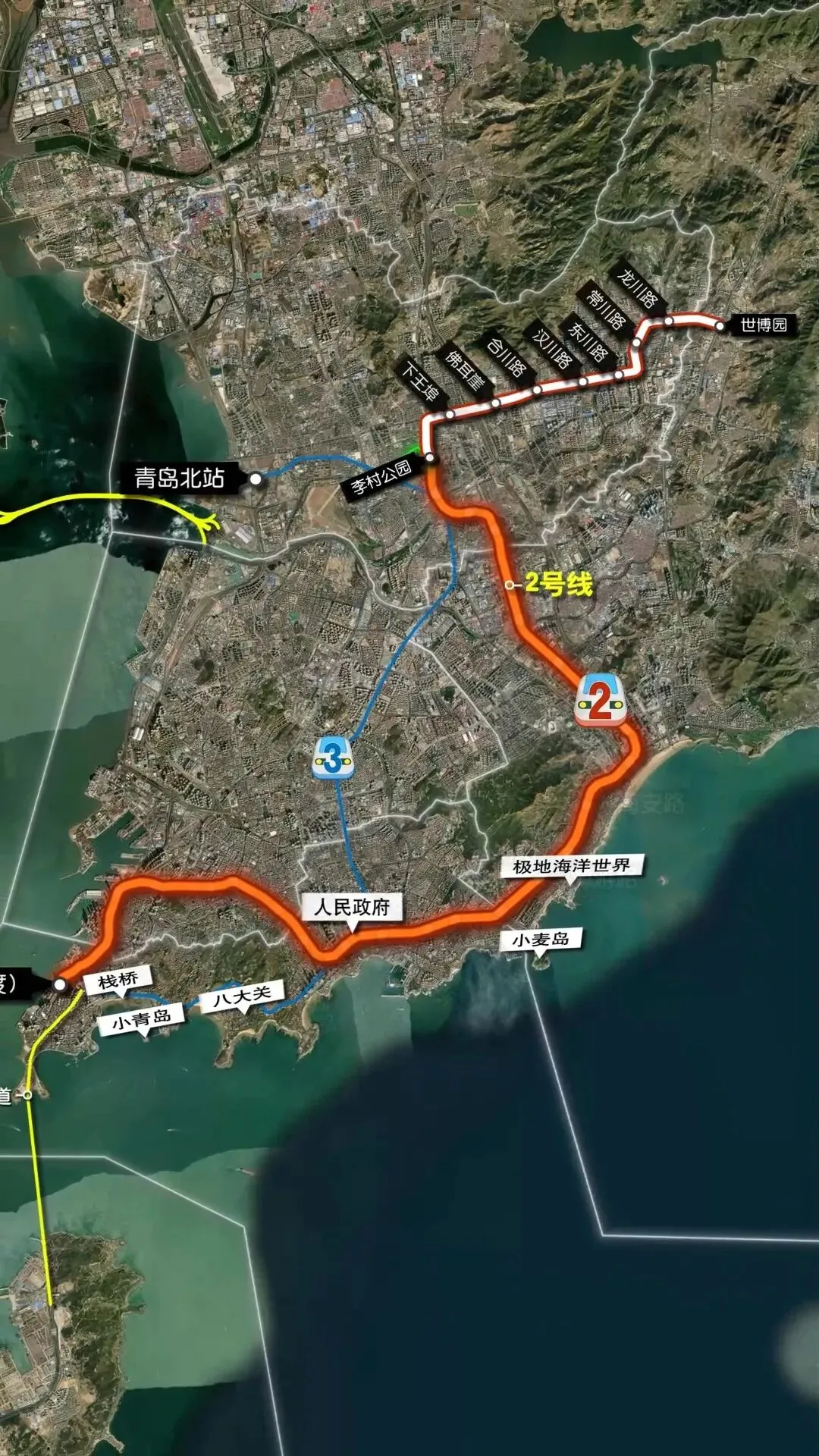 标志着青岛地铁2号线一期实现贯通运营,
