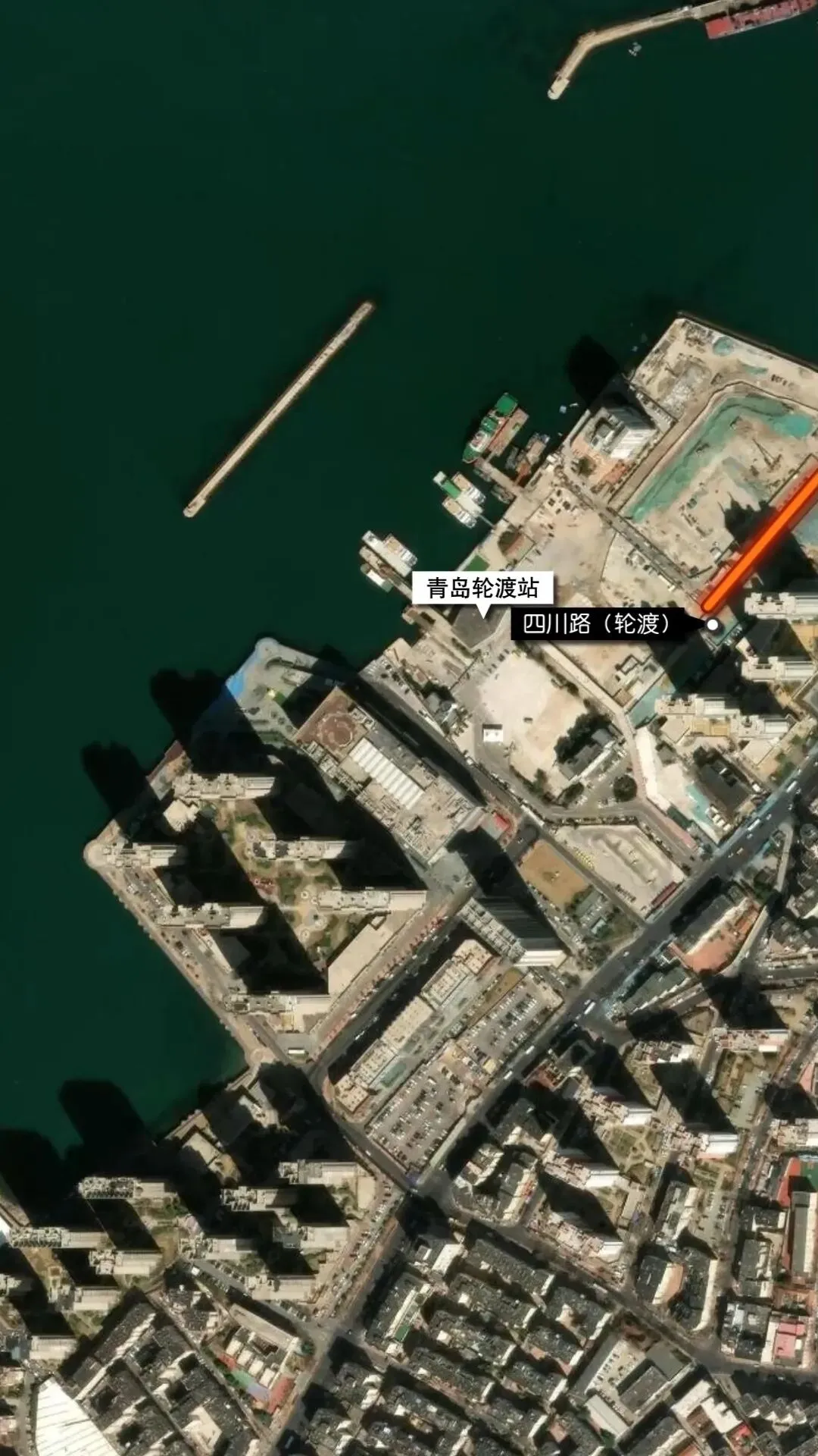 旁边的青岛轮渡站往来黄岛航线,