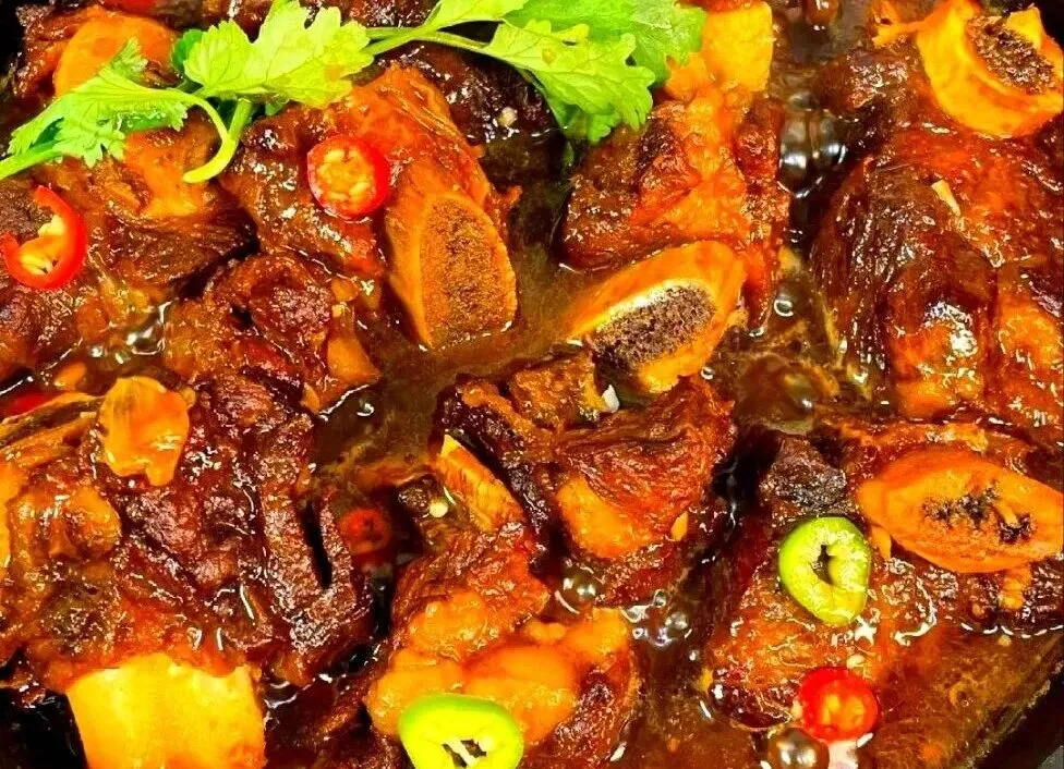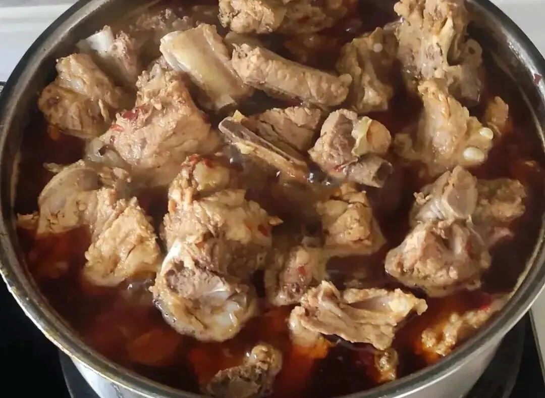 腌制工序更邪乎,农家老面酱腌够两小时,酱料渗进骨头缝,让肉入味。