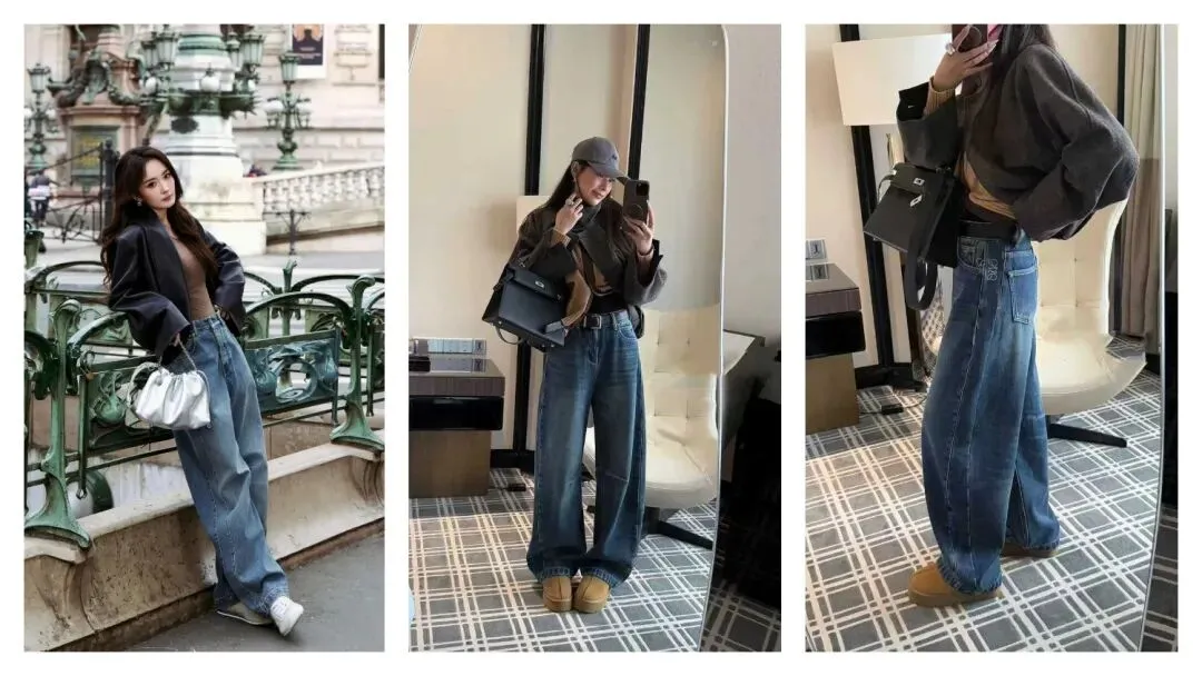 【正在团】送腰带!大幂幂同款!Yoominizj加厚高腰弯刀牛仔宽松阔腿裤,穿上气场一米八!