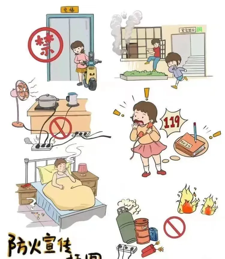 不存放酒精、汽油等易燃易爆物品,远离明火与高温热源,不玩火、不随意摆弄打火机和火柴,熟悉家庭火灾逃生路线,掌握灭火器、消防栓基础使用方法,牢记火警电话 119。