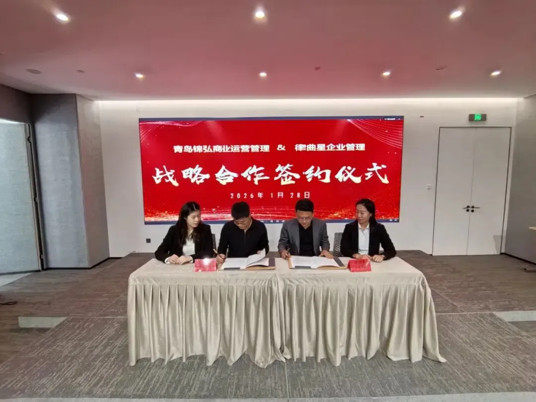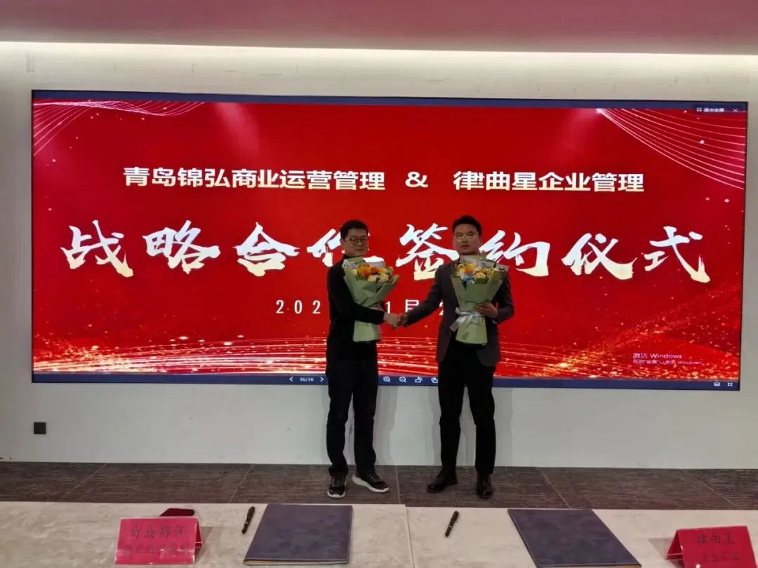 春启新章,聚力同行✨ 正值新春佳节来临之际,律曲星迎来重要战略合作喜讯——2026年1月28日,律曲星与青岛锦弘商业运营管理有限公司正式签订战略合作协议,双方本着“资源互补、优势协同、互利共赢、长期发展”的核心原则,携手搭建法治服务与商业运营深度融合的全新平台,共绘行业高质量发展蓝图。