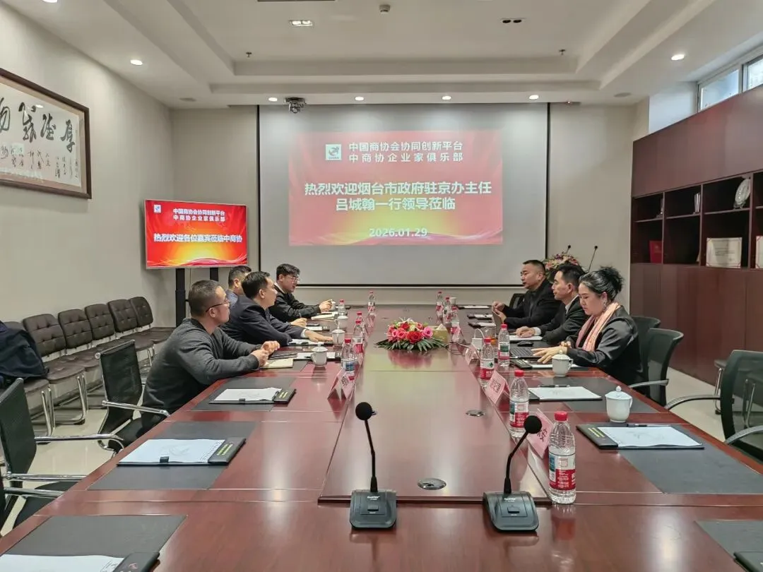 2026年1月29日,中国商协会协同创新平台(下称 “中商协”)与烟台市人民政府驻北京办事处(下称 “烟台驻京办”)合作座谈会在北京举行。烟台市政府驻京办主任吕城翰一行领导莅临座谈会现场,与中商协平台部分企业代表围绕烟台产业发展、企业业务对接、政企合作模式等议题深入交流,为烟台绿色低碳高质量发展先行区建设及双方未来合作奠定坚实基础。