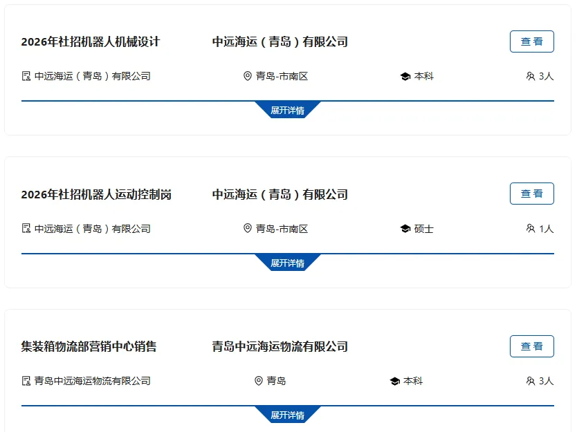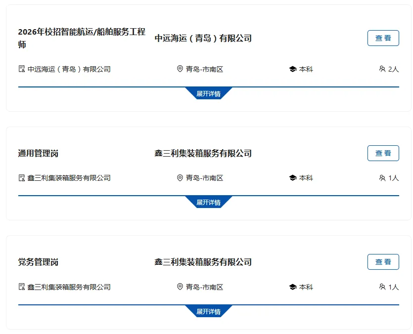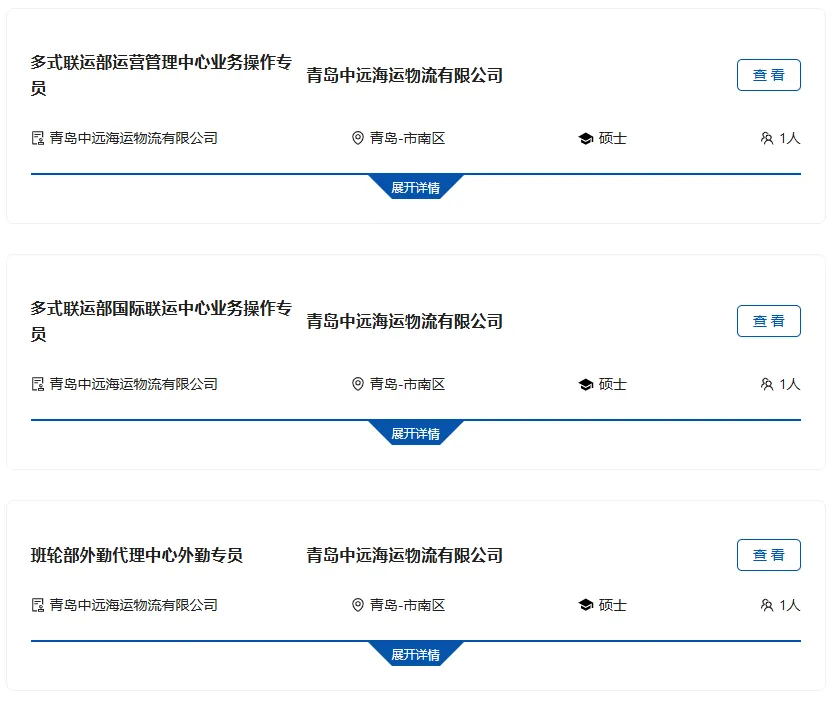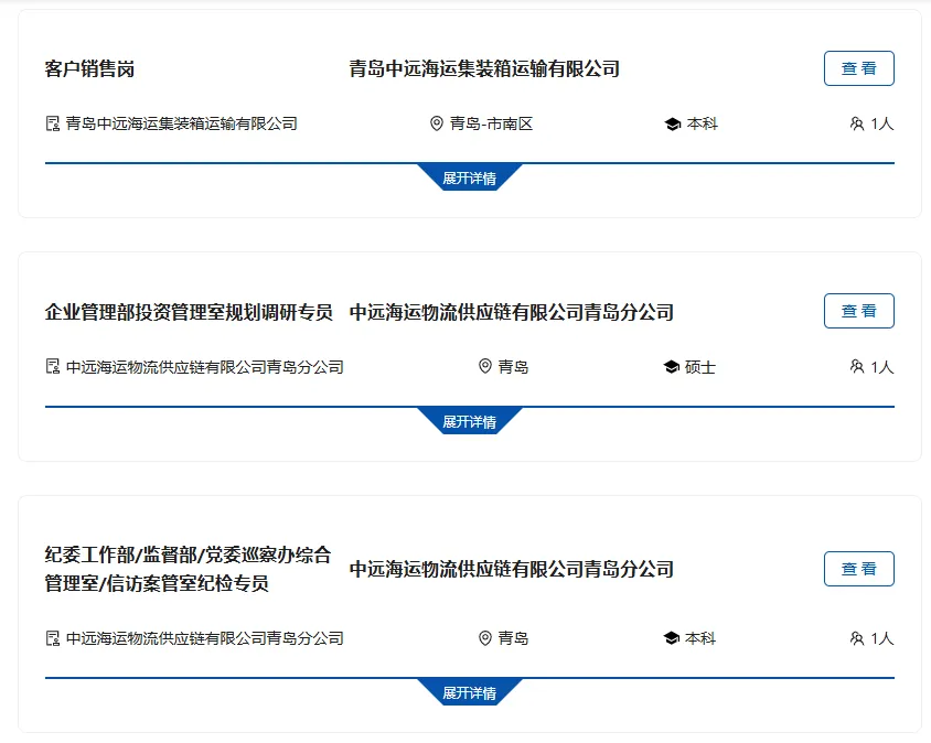 >中国远洋海运集团青岛招聘