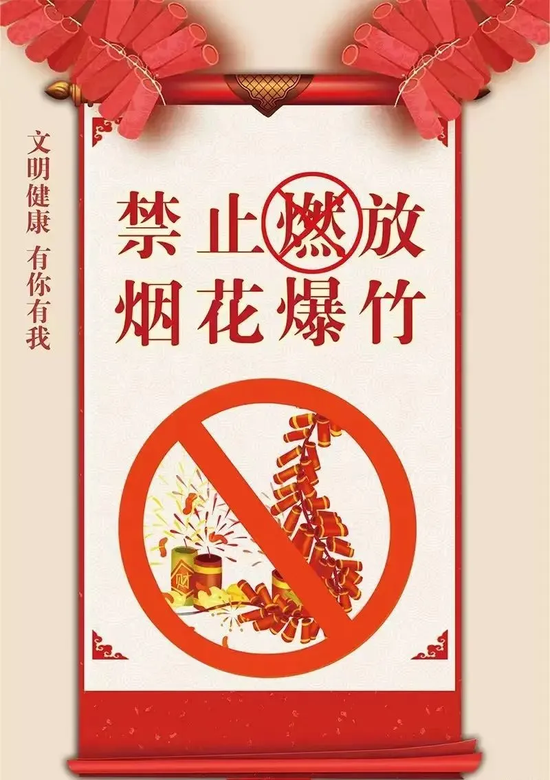 严格遵守规定,自觉做到不燃放烟花爆竹,积极宣传和倡导禁止燃放烟花爆竹理念,主动维护城市安宁生活环境,做文明守法公民。以更安全、更环保、更健康的生活方式,取代燃放烟花爆竹的传统。用文明生活理念健康生活方式、良好生活习惯大力营造低碳、绿色、环保生活新风尚。请各位家长自觉遵守相关法规,不燃放烟花爆竹,在“互联网”时代,采用喜庆音乐、鲜花等绿色、环保的方式从事或参与相关活动,尽己之力守护蓝天,全面提升幸福感!