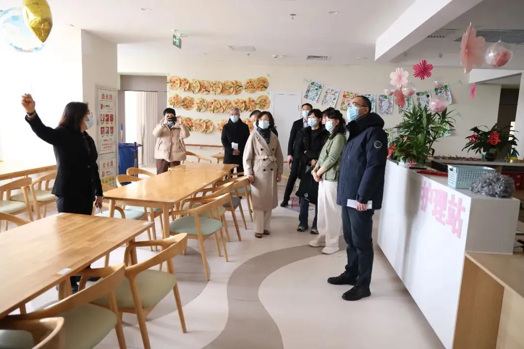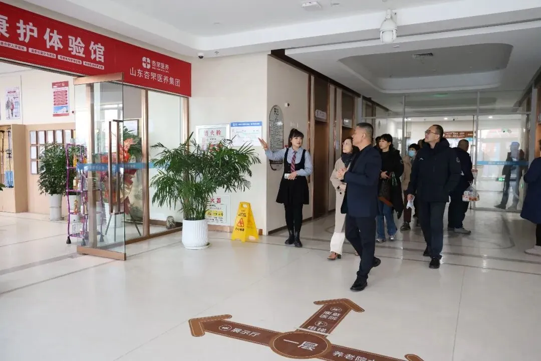 副院长孙萍一行先后深入集团1、2、3、7、13、17层进行参观,包括门诊大厅、杏罘长润医养康护体验馆、健康管理中心、重症养老区、活力养老区及长护险院护专区。