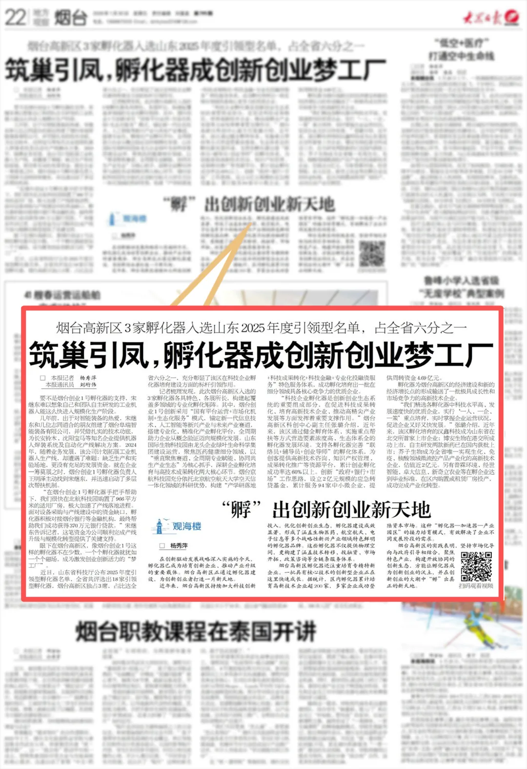 近日,山东省科技厅公布2025年度引领型孵化器名单,全省共评选出18家引领型孵化器,烟台高新区独占3席,占比达全省六分之一,充分彰显了该区在科技企业孵化器培育建设方面的标杆引领作用。