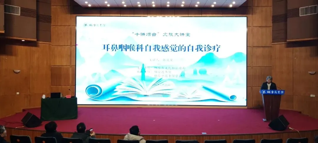 为深入挖掘展示烟台丰富的历史文化遗产,彰显城市文化软实力,推动文旅事业高质量发展,烟台图书馆、烟台市图书馆学会于2025年策划推出“对话烟台”烟台文旅大讲堂——“十讲烟台”系列主题讲座。2026年开年首场健康主题讲座“耳鼻咽喉科自我感觉的自我诊疗”于1月29日成功举办。