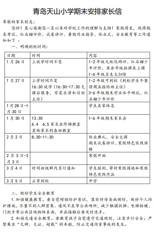 家长会时间:1月30日(周五)1-6年级19:00召开全校家长会。