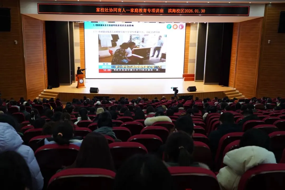 正本清源方为道,破迷开悟正当时。1月30日上午,鲁东大学莱山实验中学(滨海校区)报告厅内暖意融融,400余名家长济济一堂,目光灼灼聚焦讲台:以“家校社协同育人——家庭教育专项讲座”为载体,烟台首次由官方举办的电竞主题公益活动:“青少年互联网电竞游戏公益科普讲座”在此温情启幕。