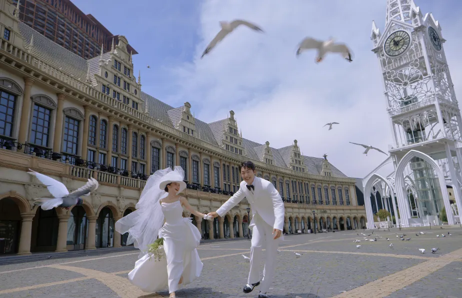 纯白婚礼堂映射光影,是青岛网红婚纱摄影胜地