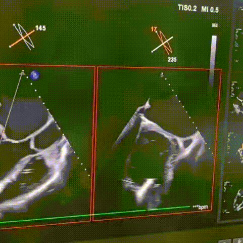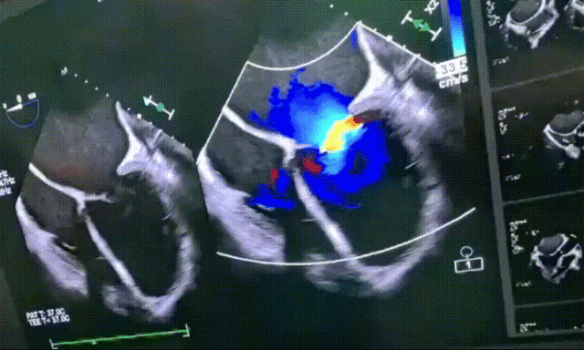 入室食道超声示:LV 65mm,无主动脉瓣反流,二尖瓣大量反流,三尖瓣少量反流,无心室内血栓,无卵圆孔分流,无室壁瘤。
