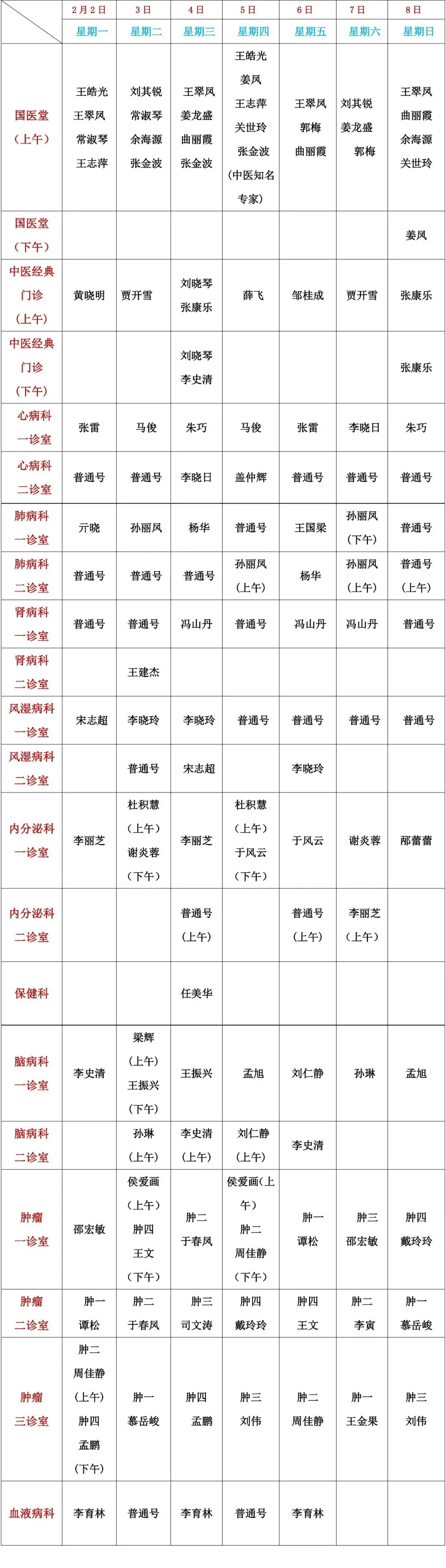 >【坐诊信息】烟台市中医医院门诊排班表(2.2-2.8)
