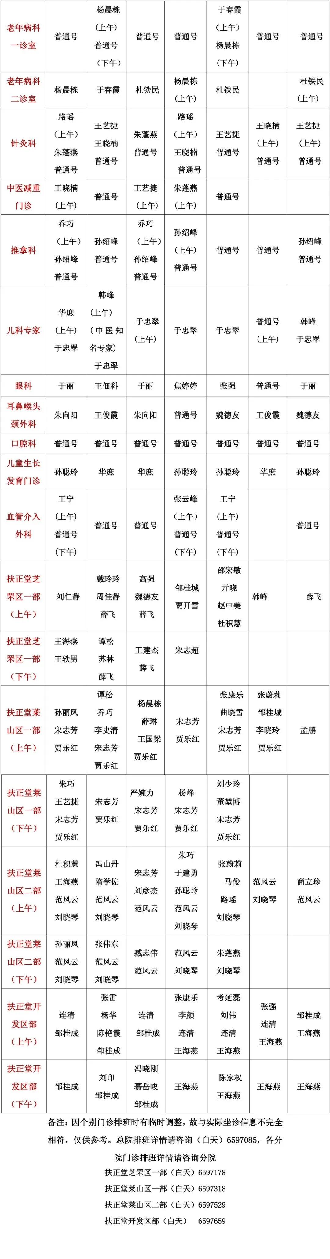 烟台市莱阳中心医院门诊医师排班表(2月1日-8日)