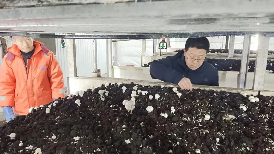 烟台同盛食用菌合作社成立于2020年,专业种植双孢菇,目前建有25个菇棚。自2025年11月以来菇房陆续出现了线虫和黄霉,烟台试验站多次进行指导,2026年1月28日试验站再次到企业菇棚进行回访,现场查看了防控情况,目前线虫已经消除,黄霉的蔓延得到控制。王鸿磊同合作社技术人员进行了交流,要求一定要做好卫生,发病菇房所在种植区进行同步严格消毒处理;对于发病菇房进行二次蒸料后再撤料,同时废料不在场区停留直接运走,所有工具和工作人员必须进行严格消毒。